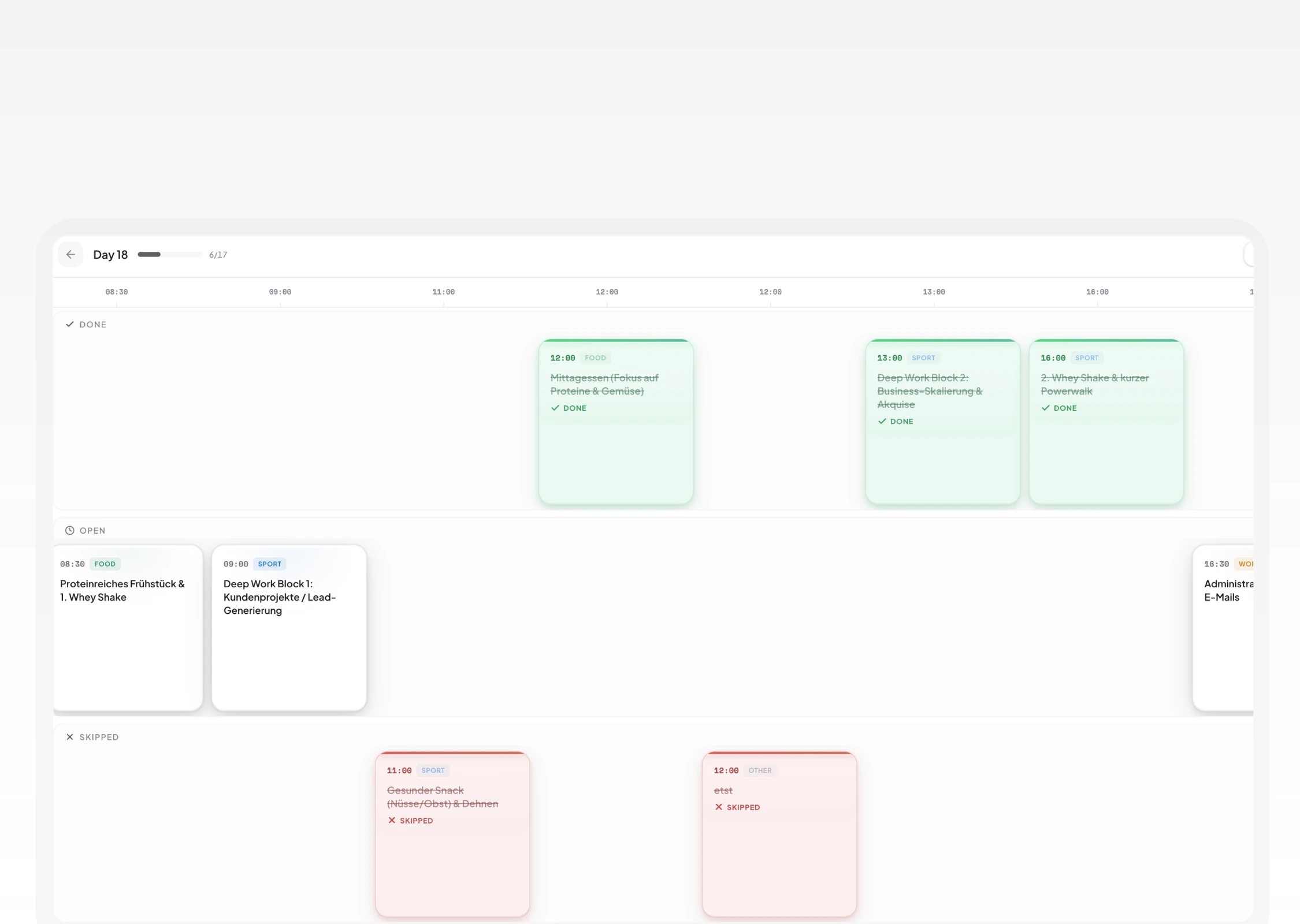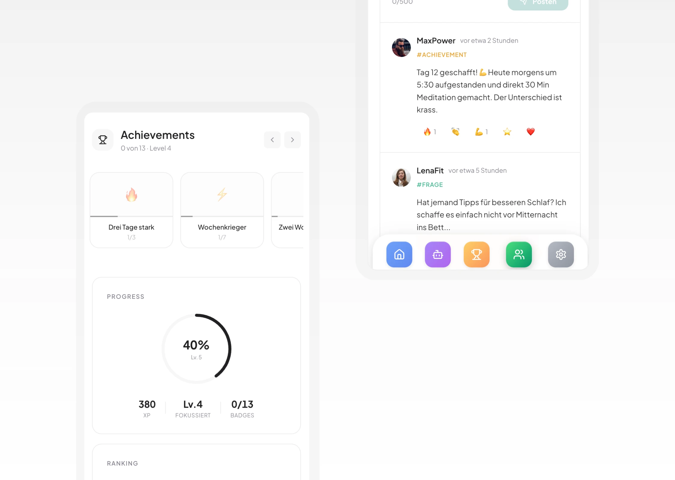 A performance tracking app for high-intensity habit building. It features a custom scoring system for PPL gym routines and running metrics.