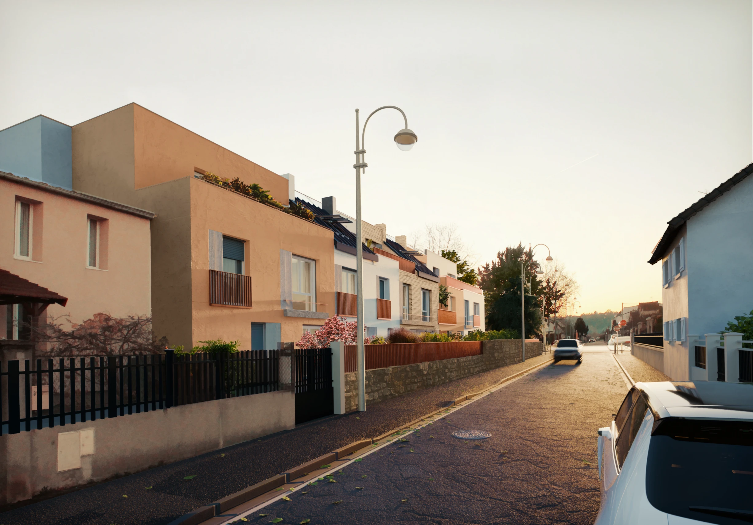 Two street level renders for a residential building