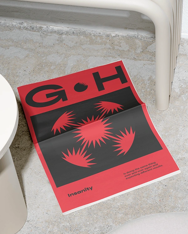 The symbol was developed with the idea of “breaking cycles”, and based on the phrase by Albert Einstein: “Insanity is doing the same thing over and over again and expecting different results”. The brand does not want to be known for doing what is already done, it wants to reach out to break the idea of “another interface designer”. Therefore, the circle represents what is already done today, the points at the top right represent the explosion of the cycle that the brand offers, the destruction of the common to make room for innovative ideas.