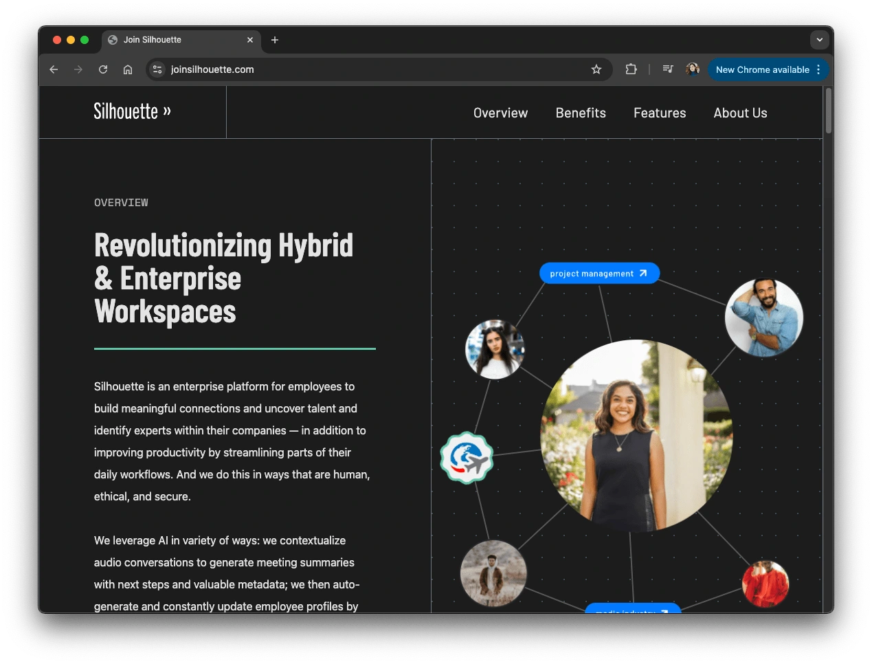 Silhouette is an enterprise platform that enables employees at large organizations to connect. I built their marketing website.
