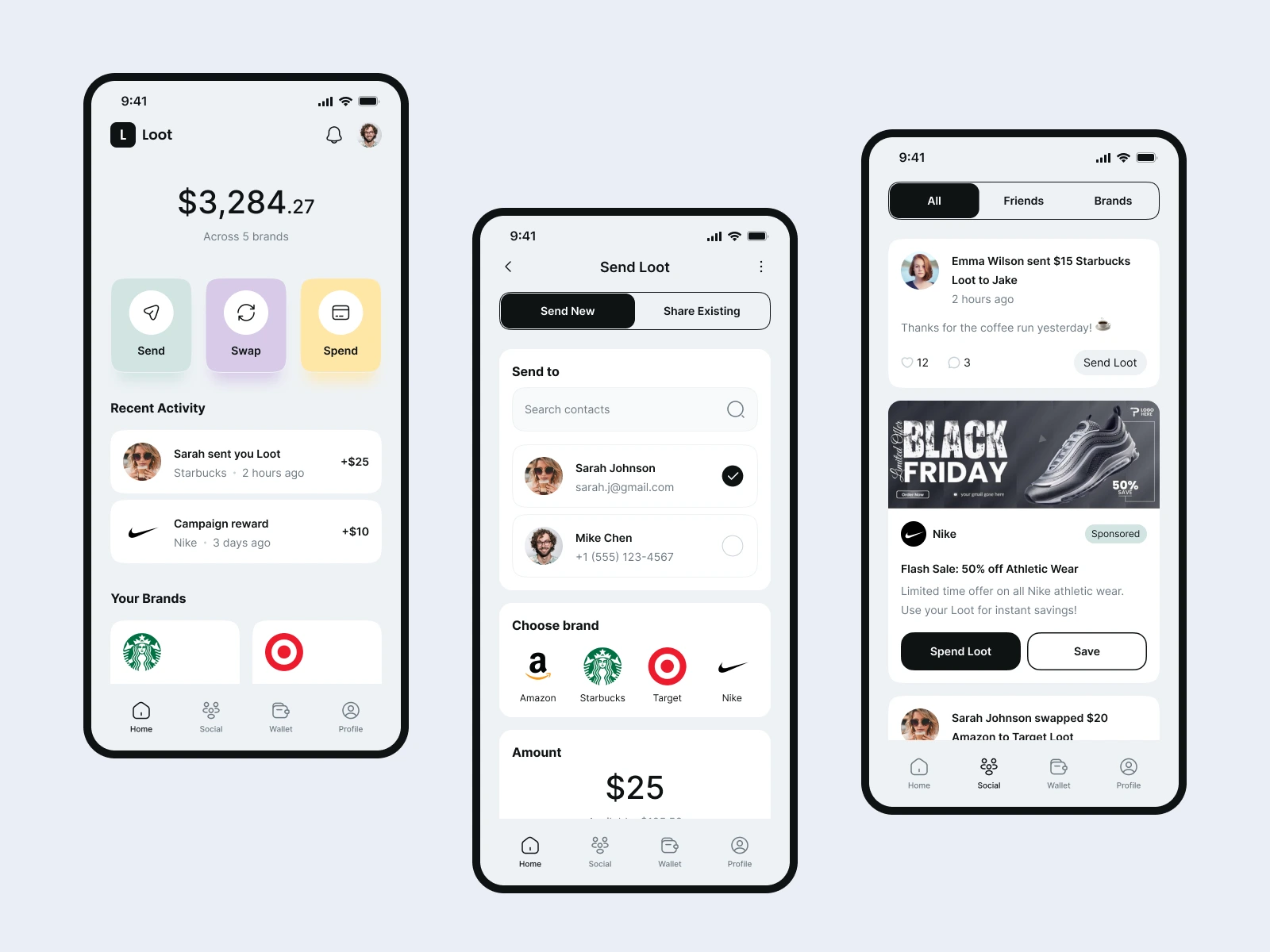 Loot is a digital gifting and loyalty app where users manage their brand-specific balances on a single Loot Card. They can send, receive, swap, and share funds across multiple brands, discover exclusive offers, and engage socially—all while keeping control of their personal data through the Loot Wallet app.