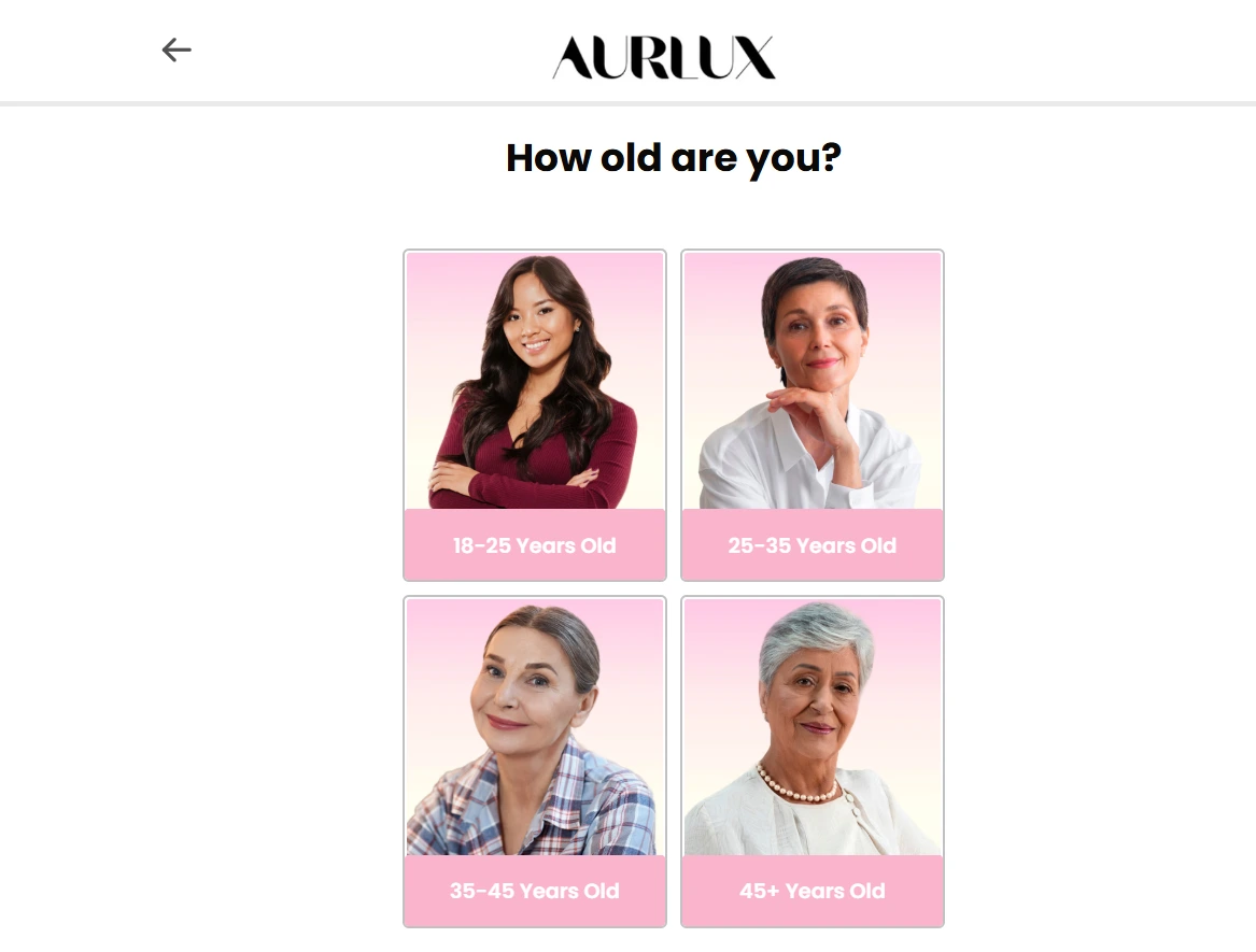 Designed a high-converting Heyflow for AURLUX Skincare's e-commerce platform.