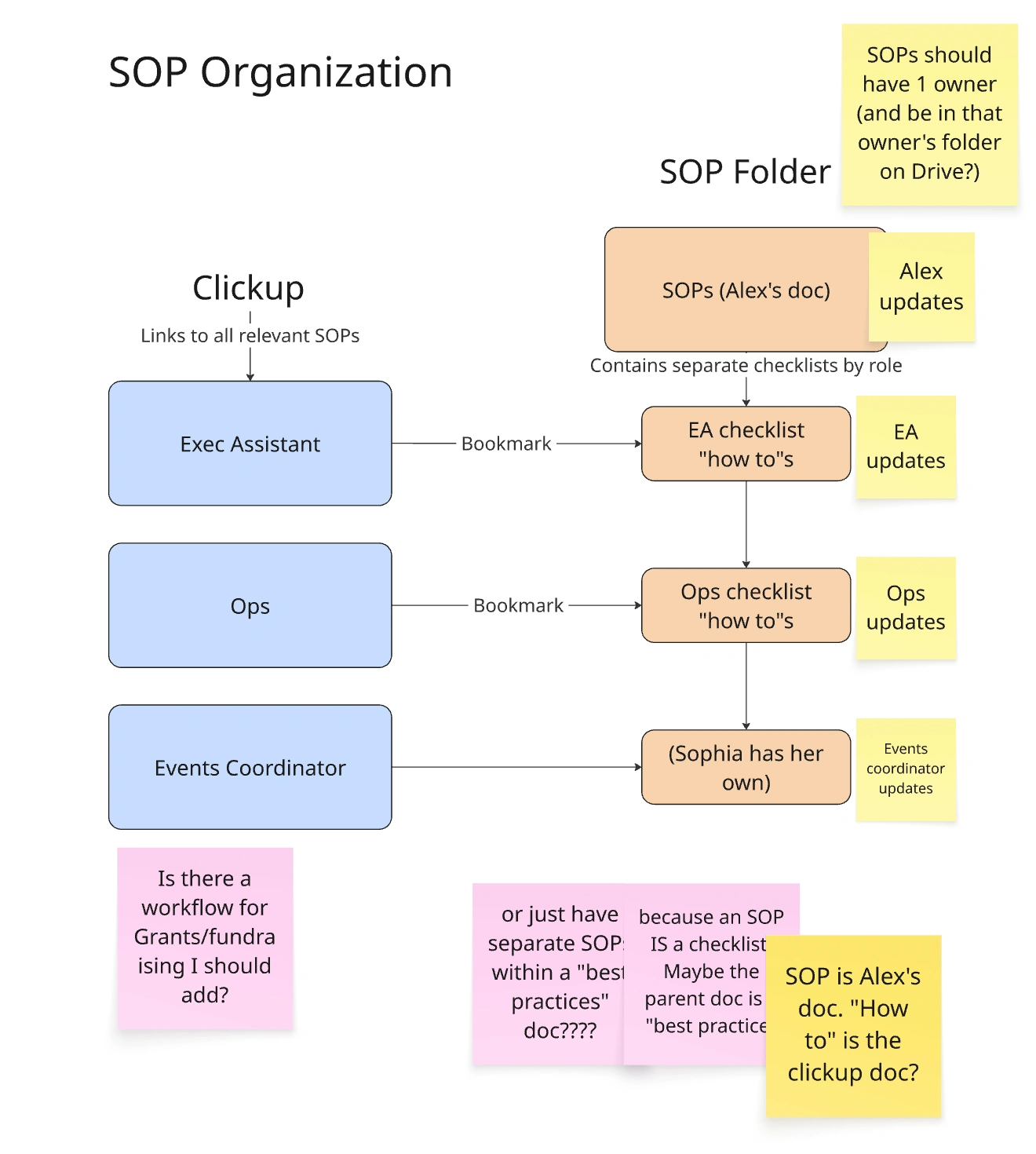 Developing operational systems, mostly within ClickUp, to help staff navigate the best practices and SOPs.