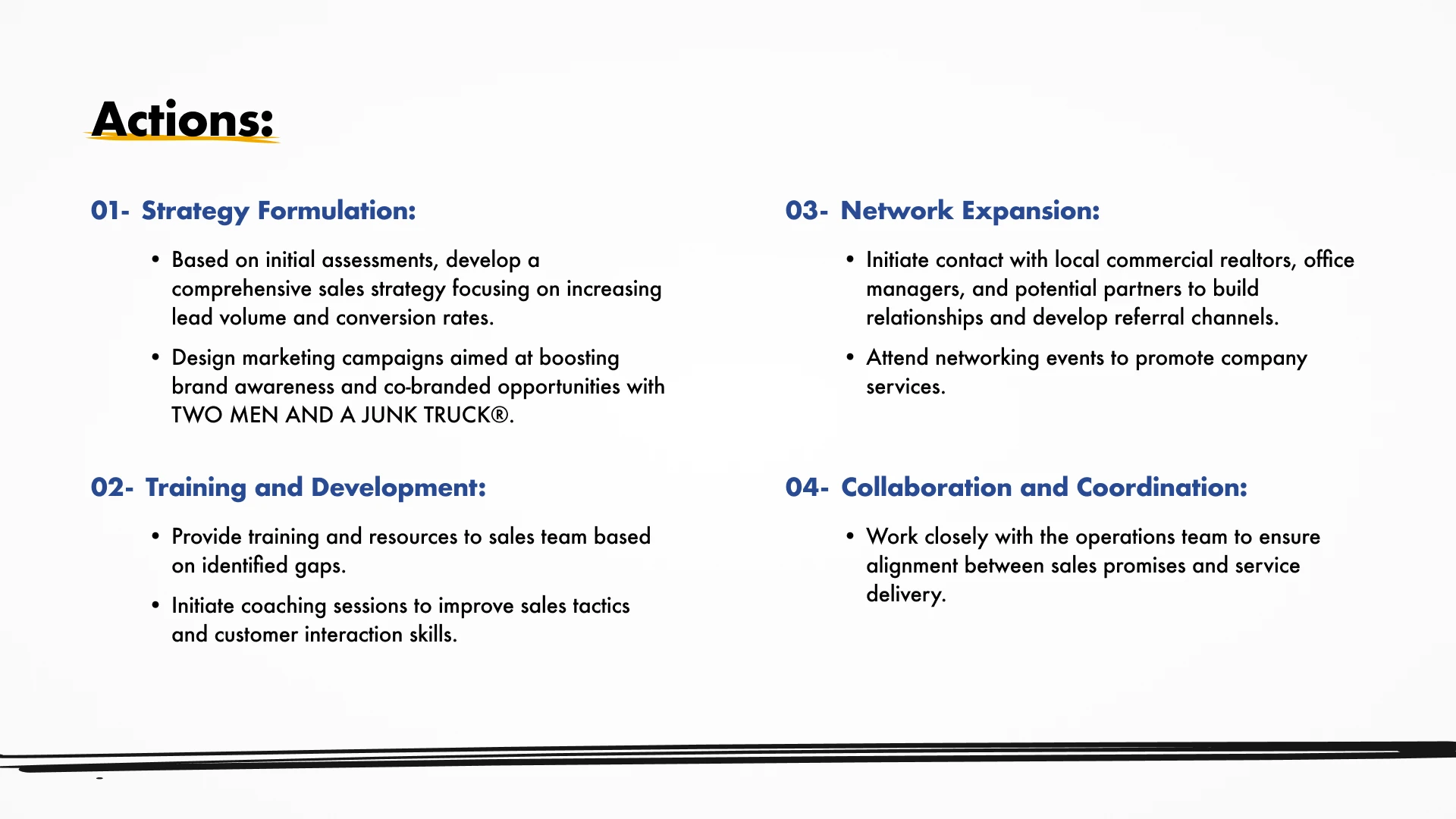 Structured slide layout designed to communicate campaign strategy and services clearly.