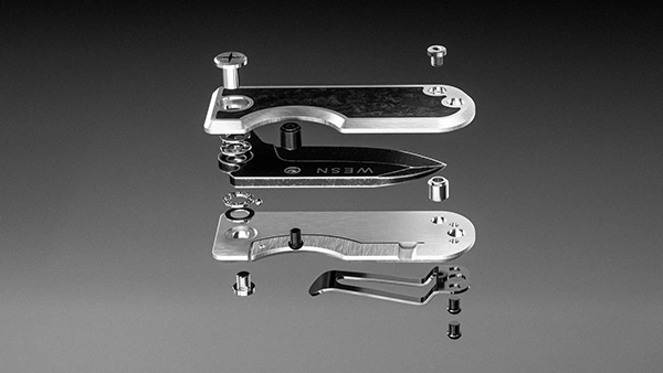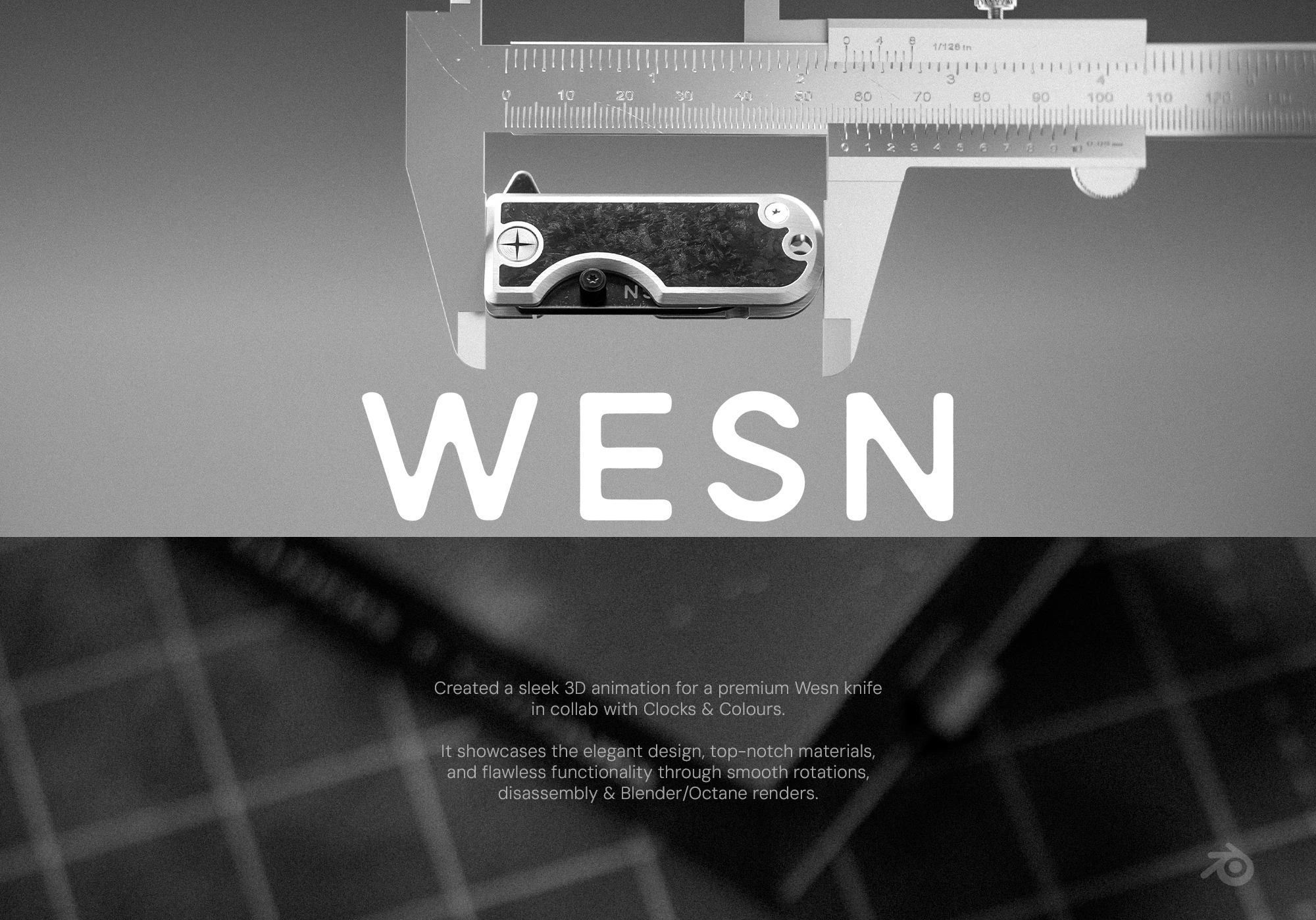 Sleek 3D animation for premium Wesn knife collab with Clocks & Colours. Features elegant design, top materials via smooth disassembly, rotations in Blender.