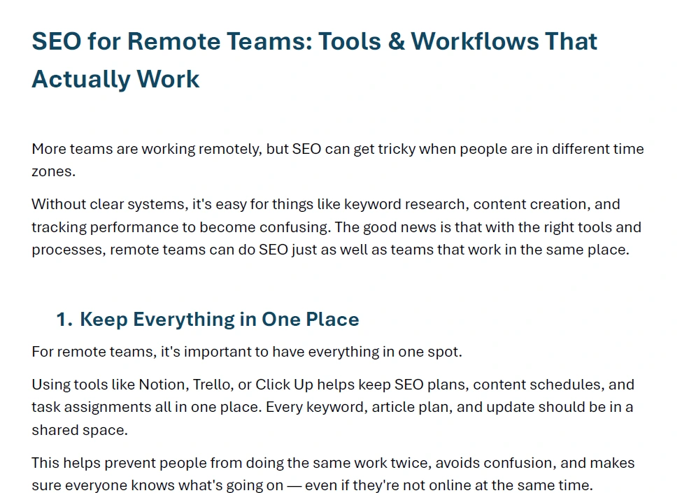 SEO Blog Writing Sample: Optimized Content for Remote Teams