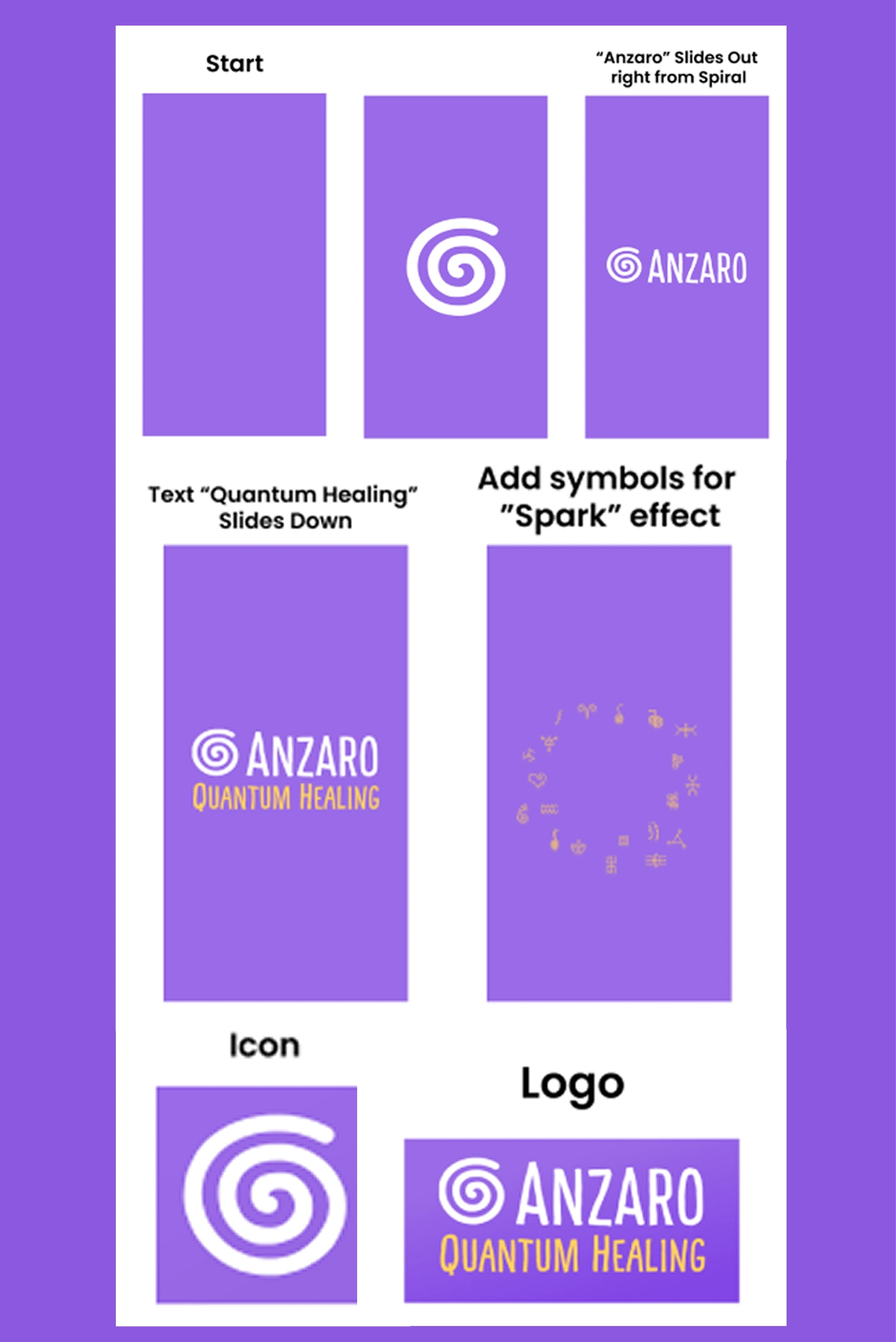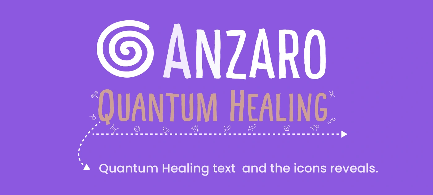 Below the Anzaro the Quantum Healing text reveals and the small symbols below the Quantum Healing reveal and fade out.