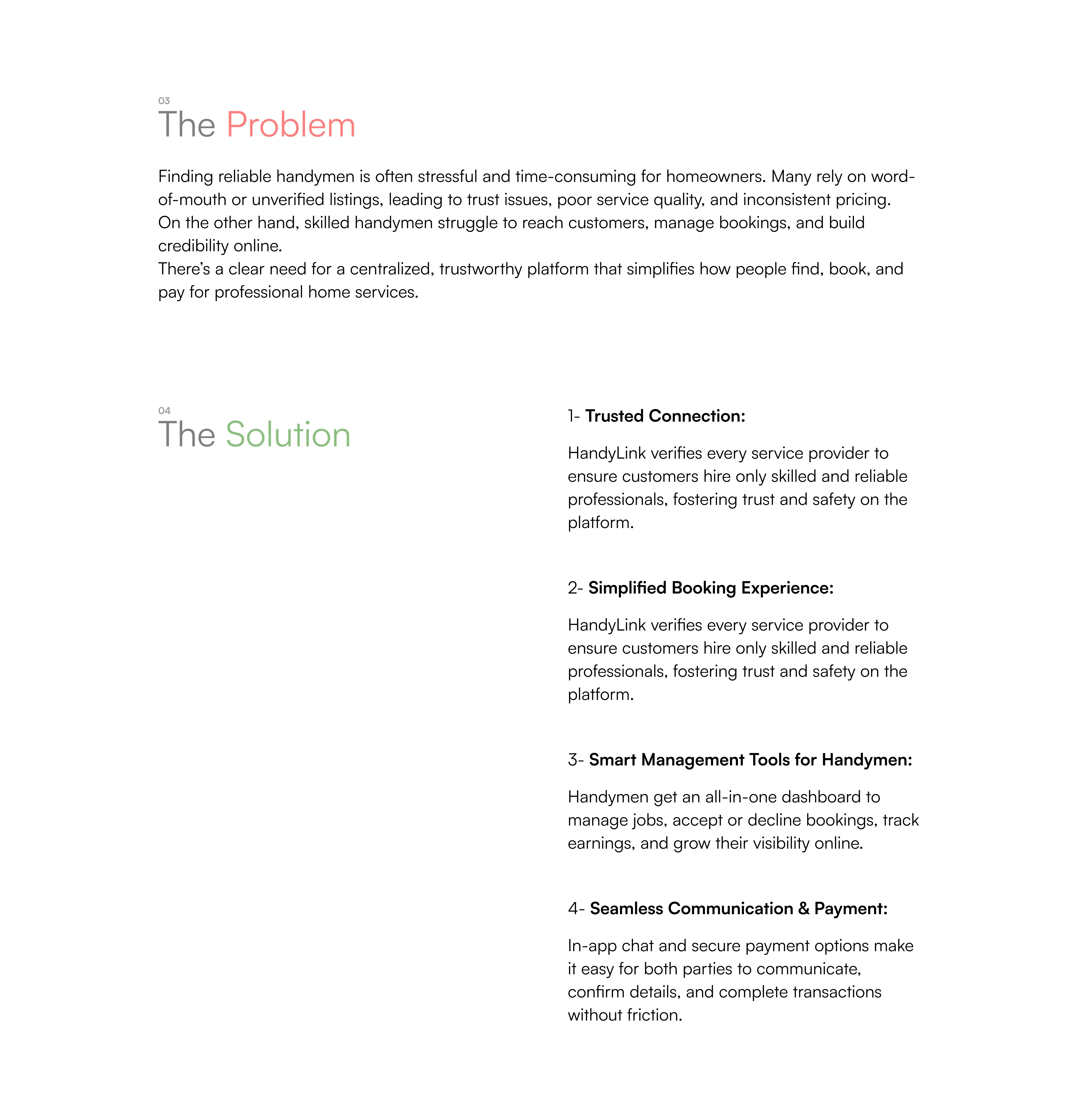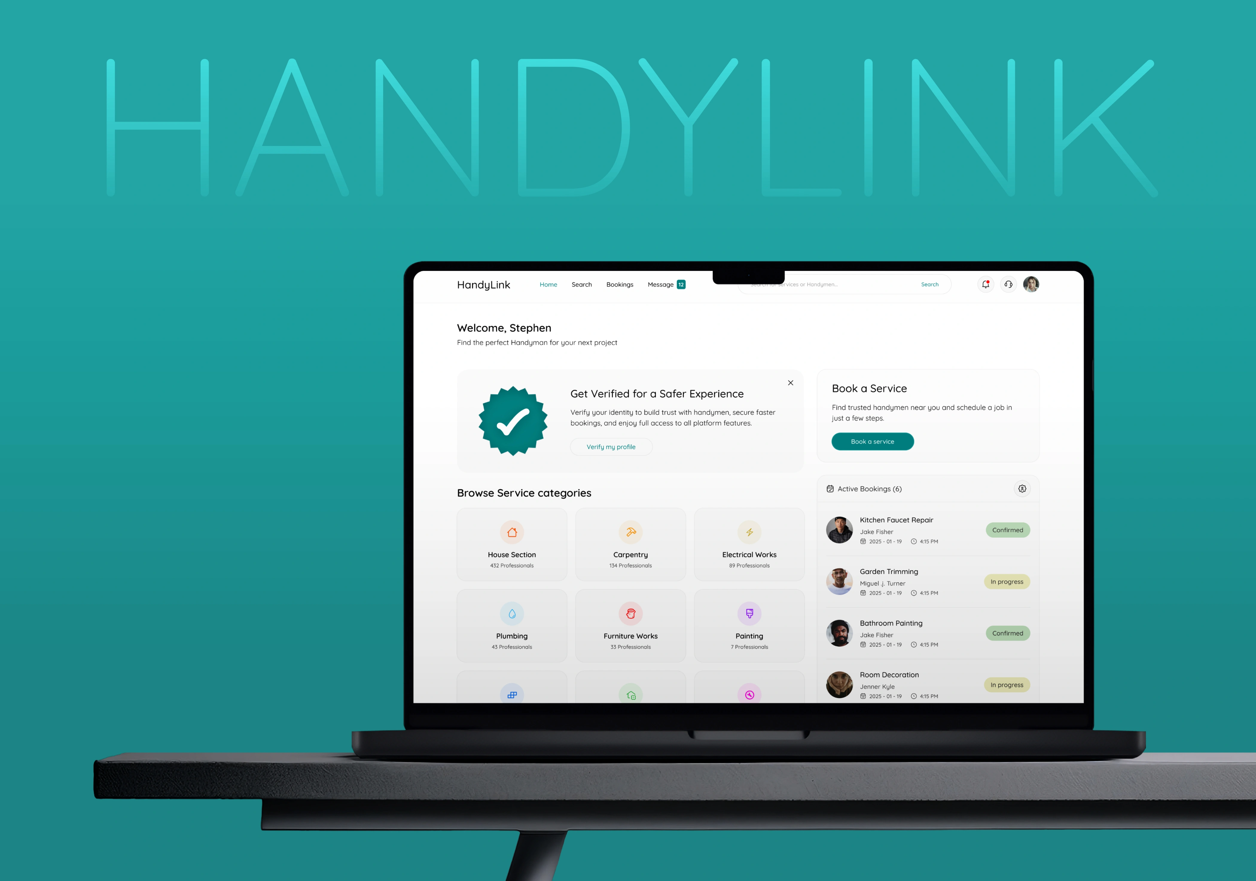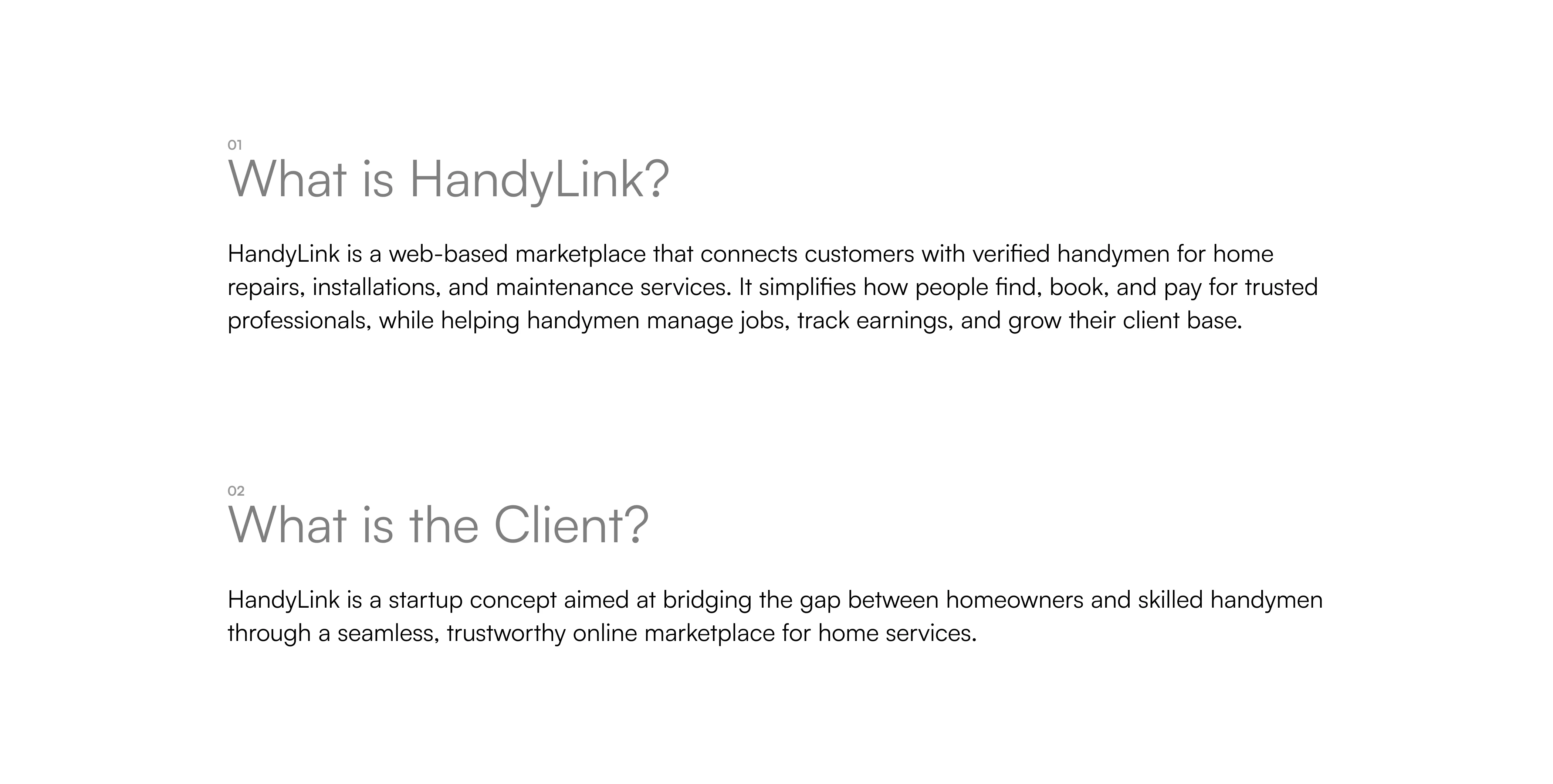 HandyLink is a web-based marketplace that connects customers with verified handymen for home repairs, installations, and maintenance services.