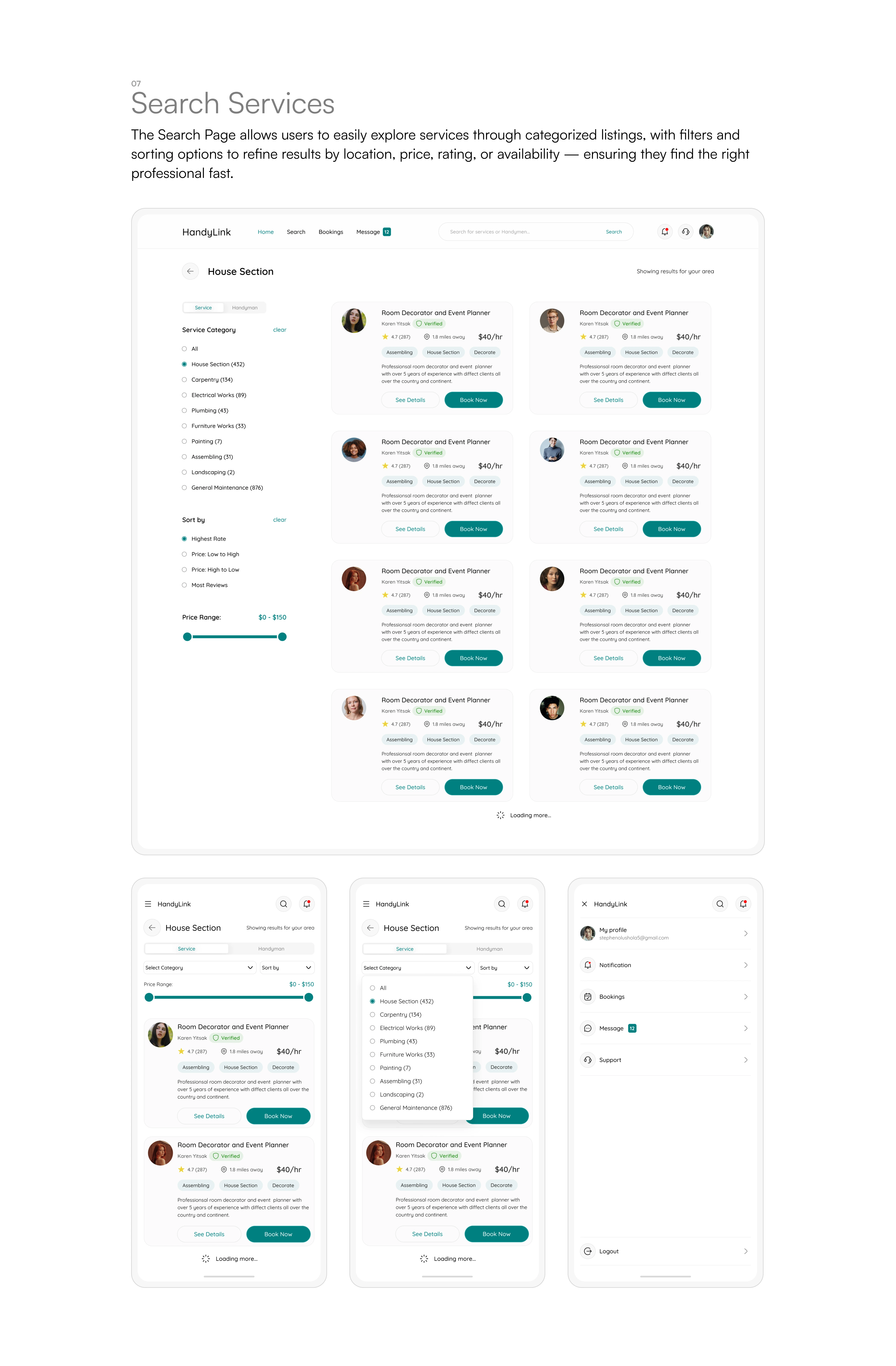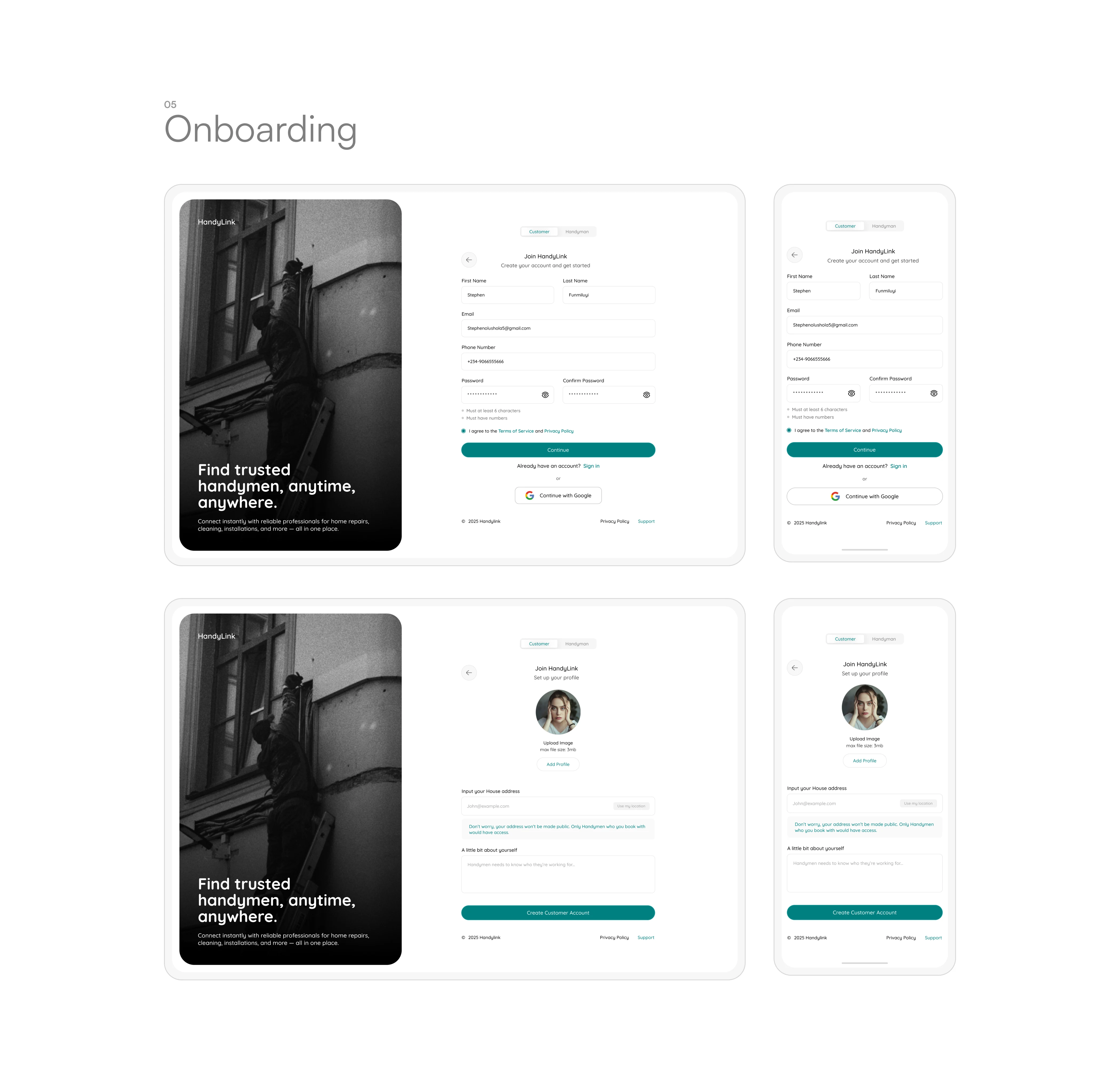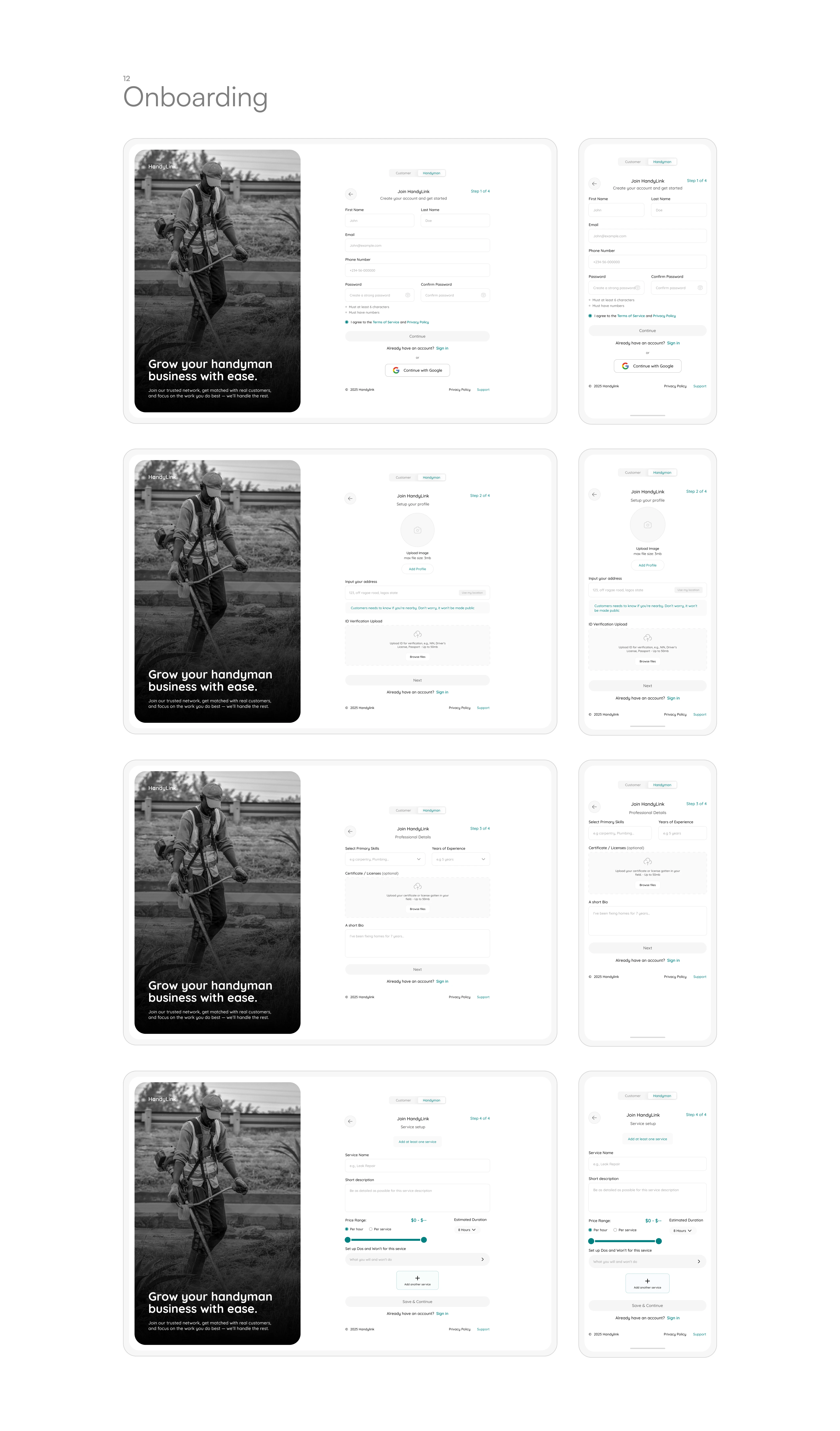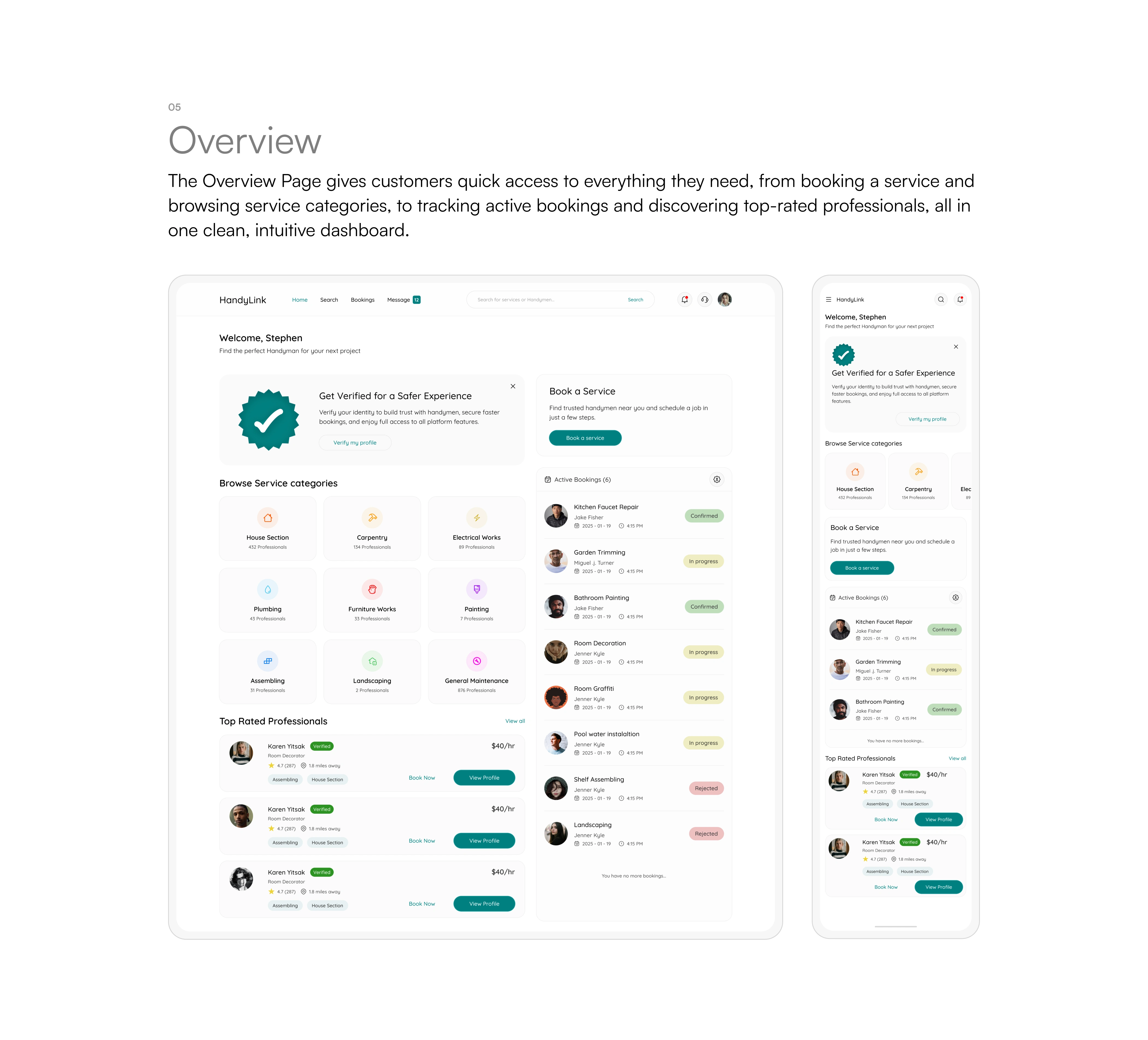 HandyLink is a web-based marketplace that connects customers with verified handymen for home repairs, installations, and maintenance services.