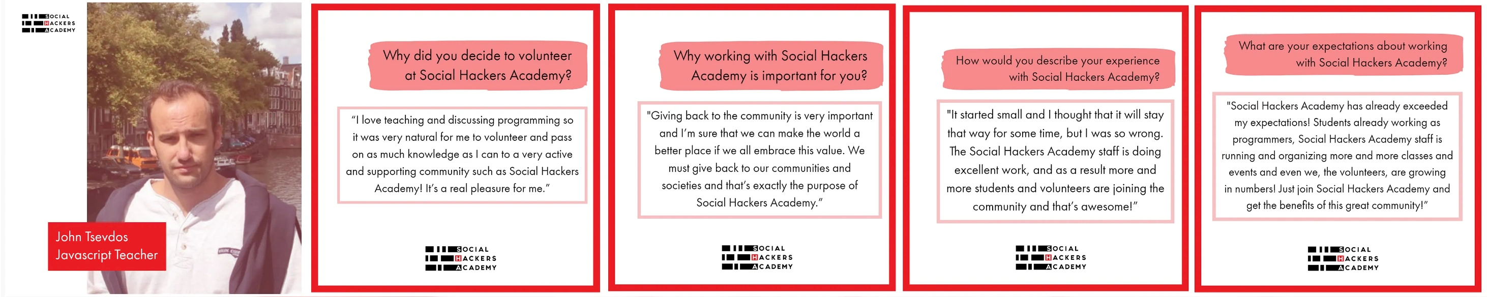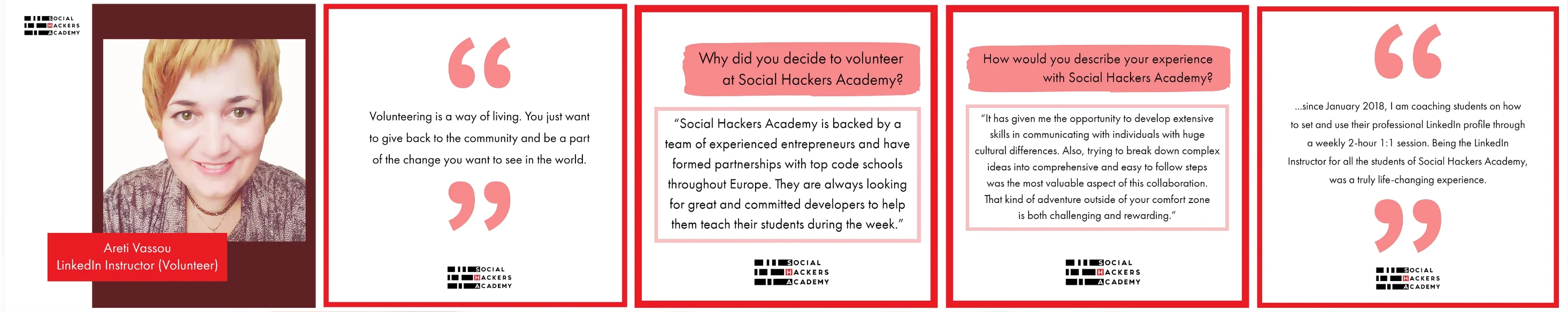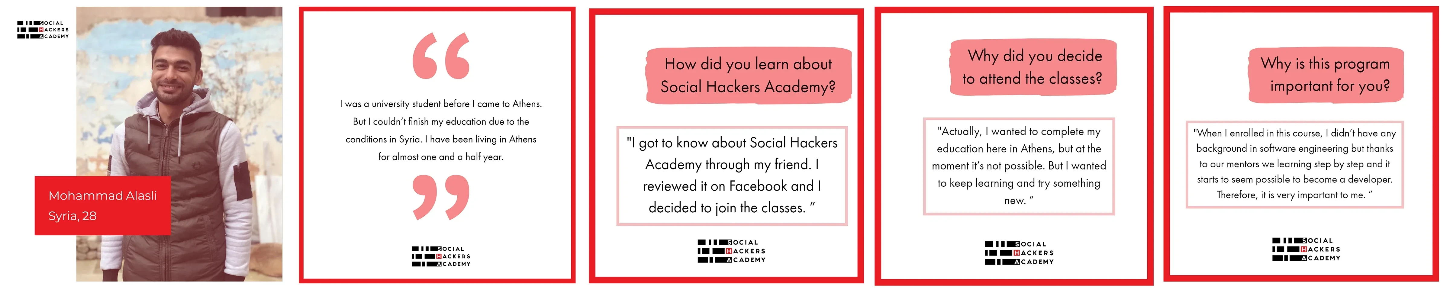 Social Hackers Academy is the first full-time coding school in Athens for refugees, migrants, and unemployed Greek people. Social Hackers Academy’s team is educating, integrating, and finding a job for people who belong to social vulnerable groups. Graduates’ employability is the main goal that is achieved by delivering a comprehensive educational program in software engineering.