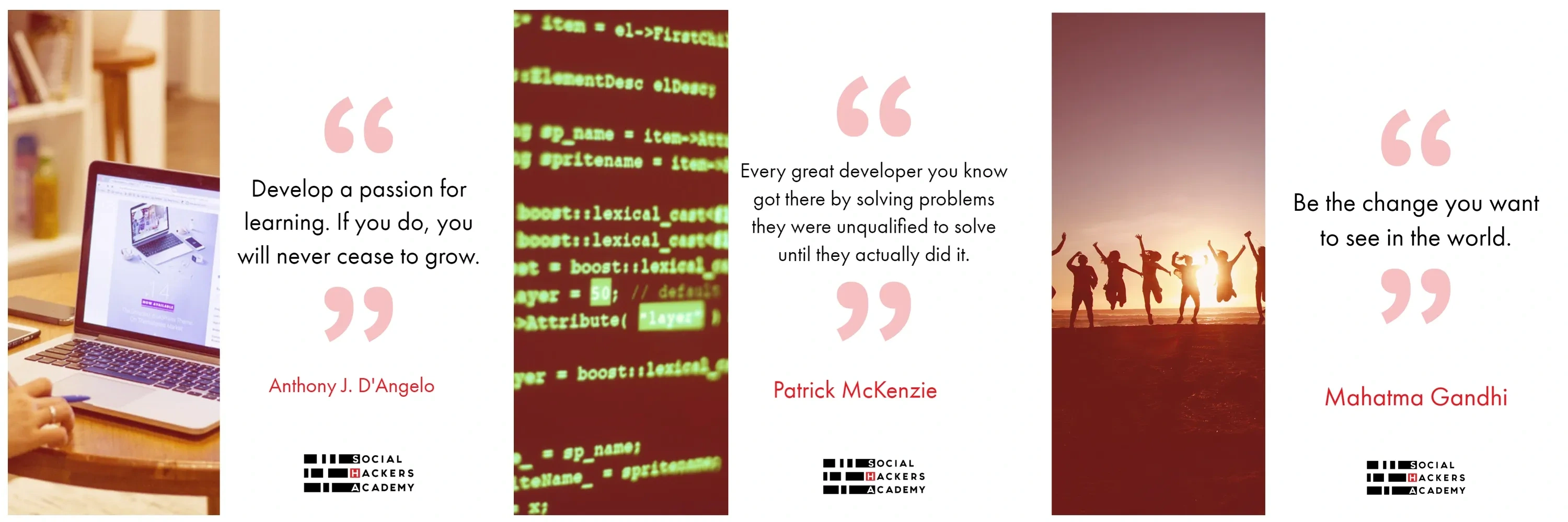 While some consider sharing quotes outdated, we found them highly effective when linked directly to our core values: education, technology, and social impact. I developed a content plan that included customized designs for carefully selected quotes. This served as a constant source of motivation for our students following us on social media and helped them connect with the experiences of successful tech leaders worldwide.