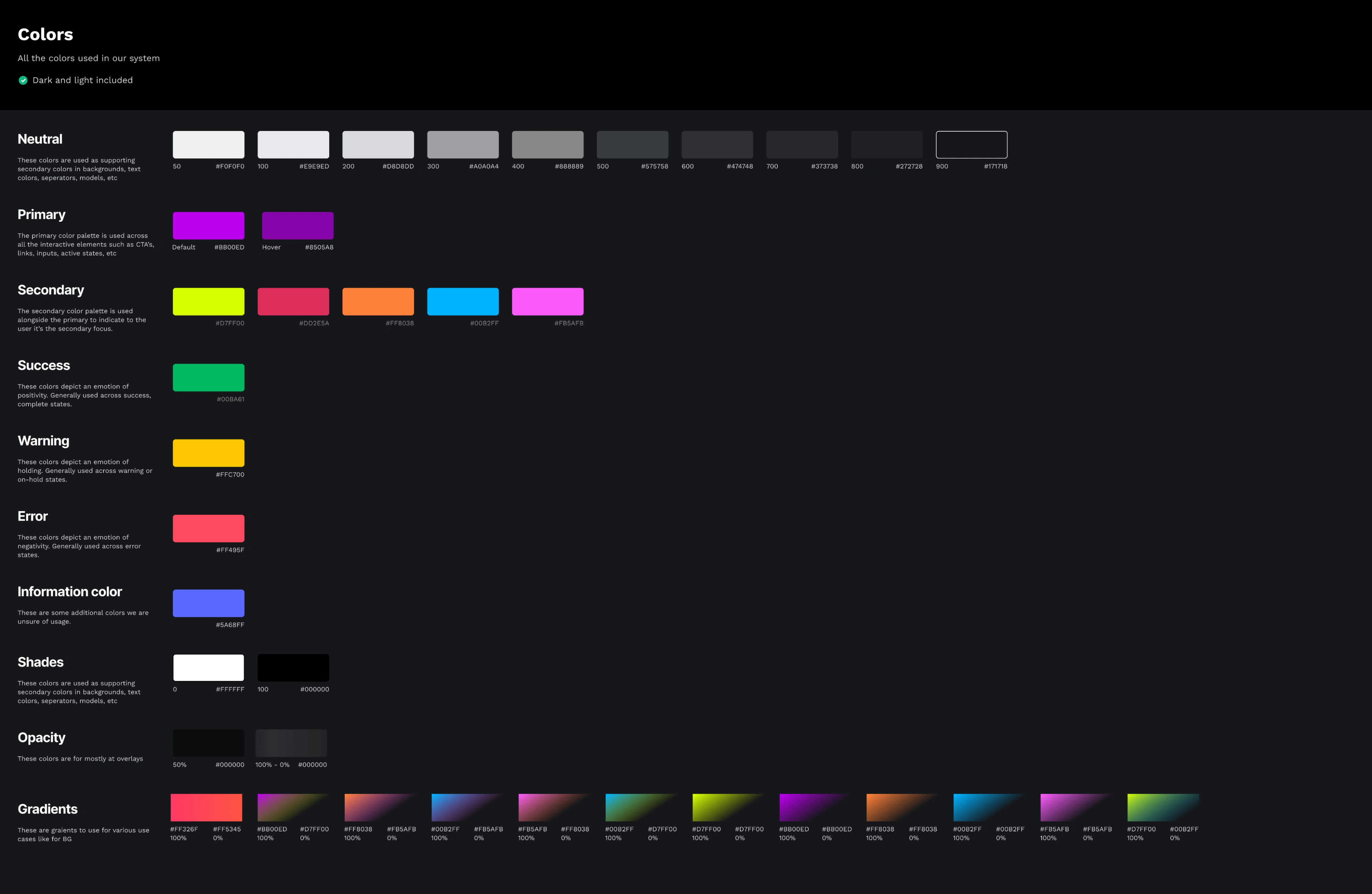 We used existing fonts on the product which is Worksans but specified all the sizes and weights. Also, we defined colors and standard rules for every use case.