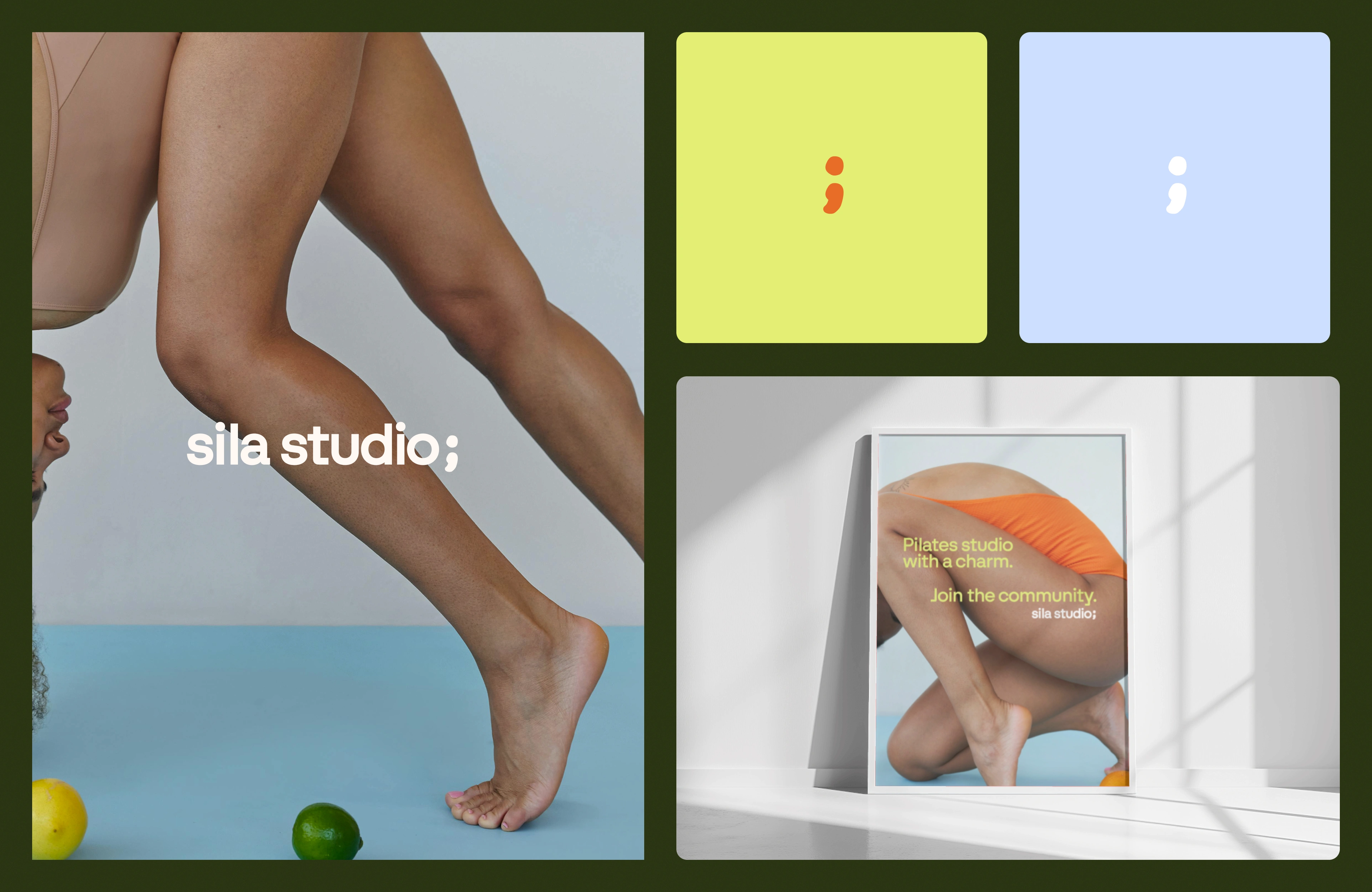 Sila Studio is a contemporary Pilates space built around connection, balance, and empowerment. The brand identity captures the studio’s vibrant community spirit through an uplifting color palette of light blue, dark green, striking yellow, and bright orange - standing out in a market often defined by minimal and neutral tones. The visual language reflects minimalism and calmness, keeping a sense of calm and inclusivity that mirrors the studio’s approach to wellness.