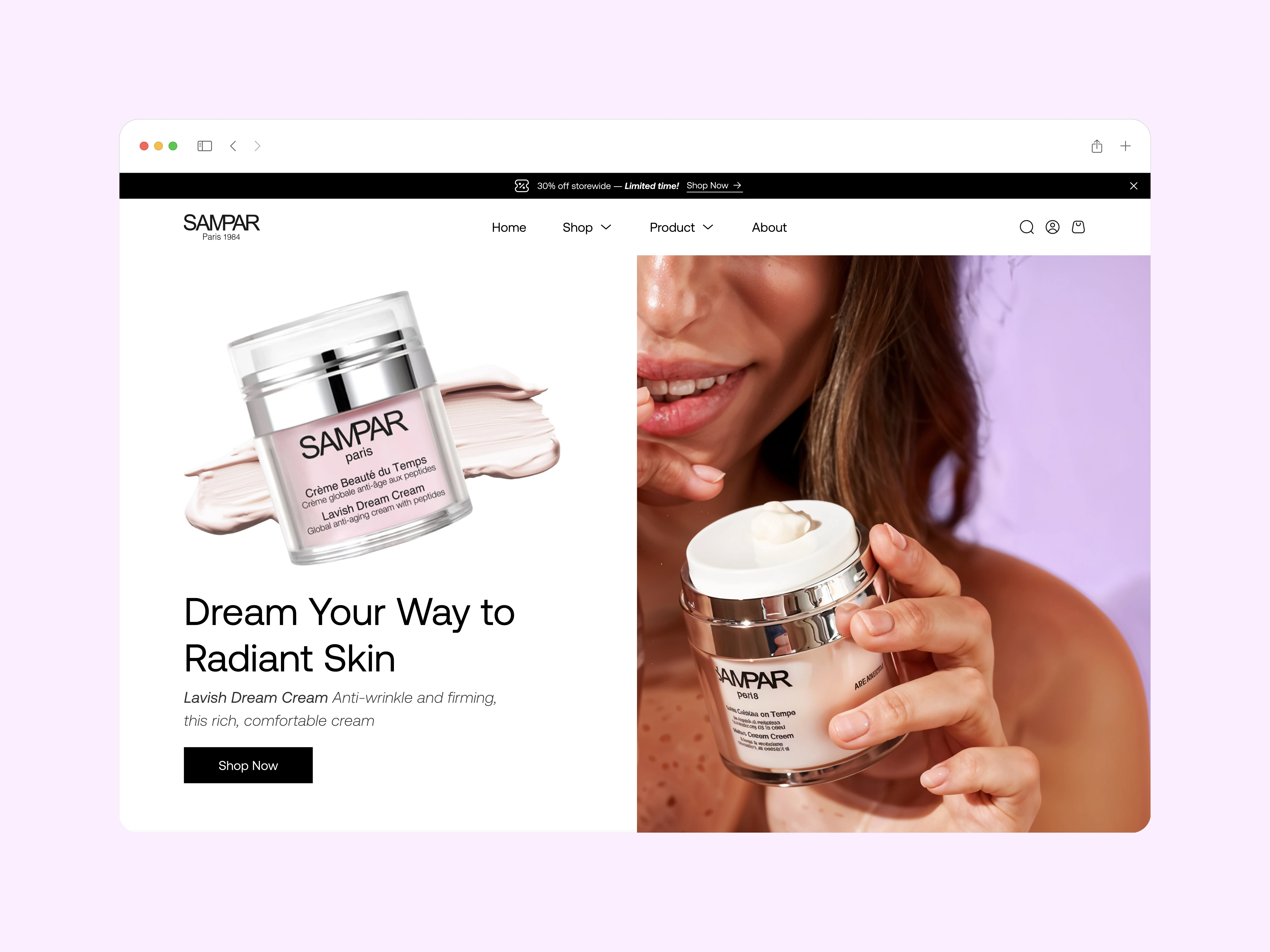We reimagined the hero section of Sampar’s eCommerce site to reflect the brand’s refined elegance and skincare science — built to grow with modern beauty lovers and skincare aficionados.