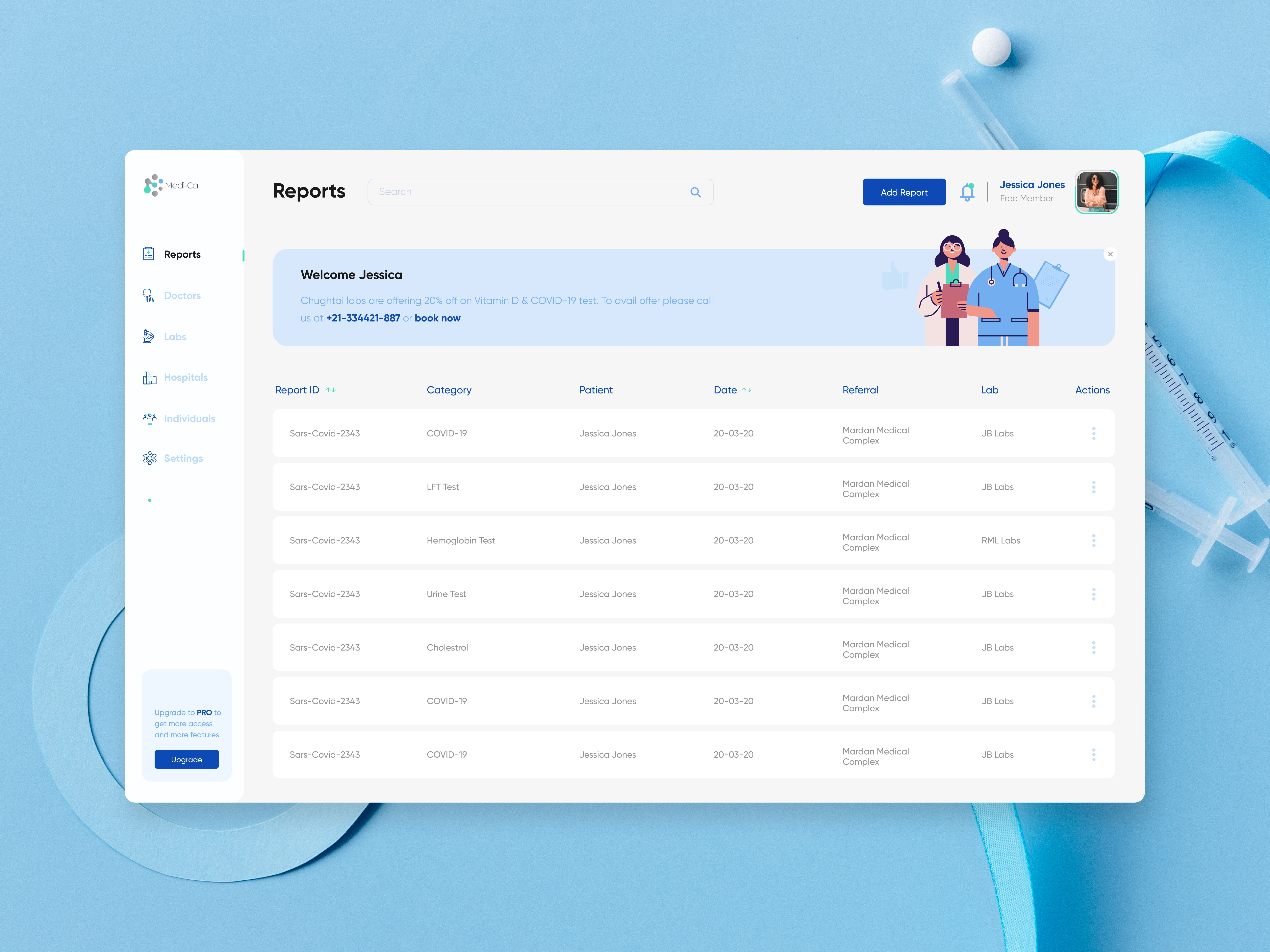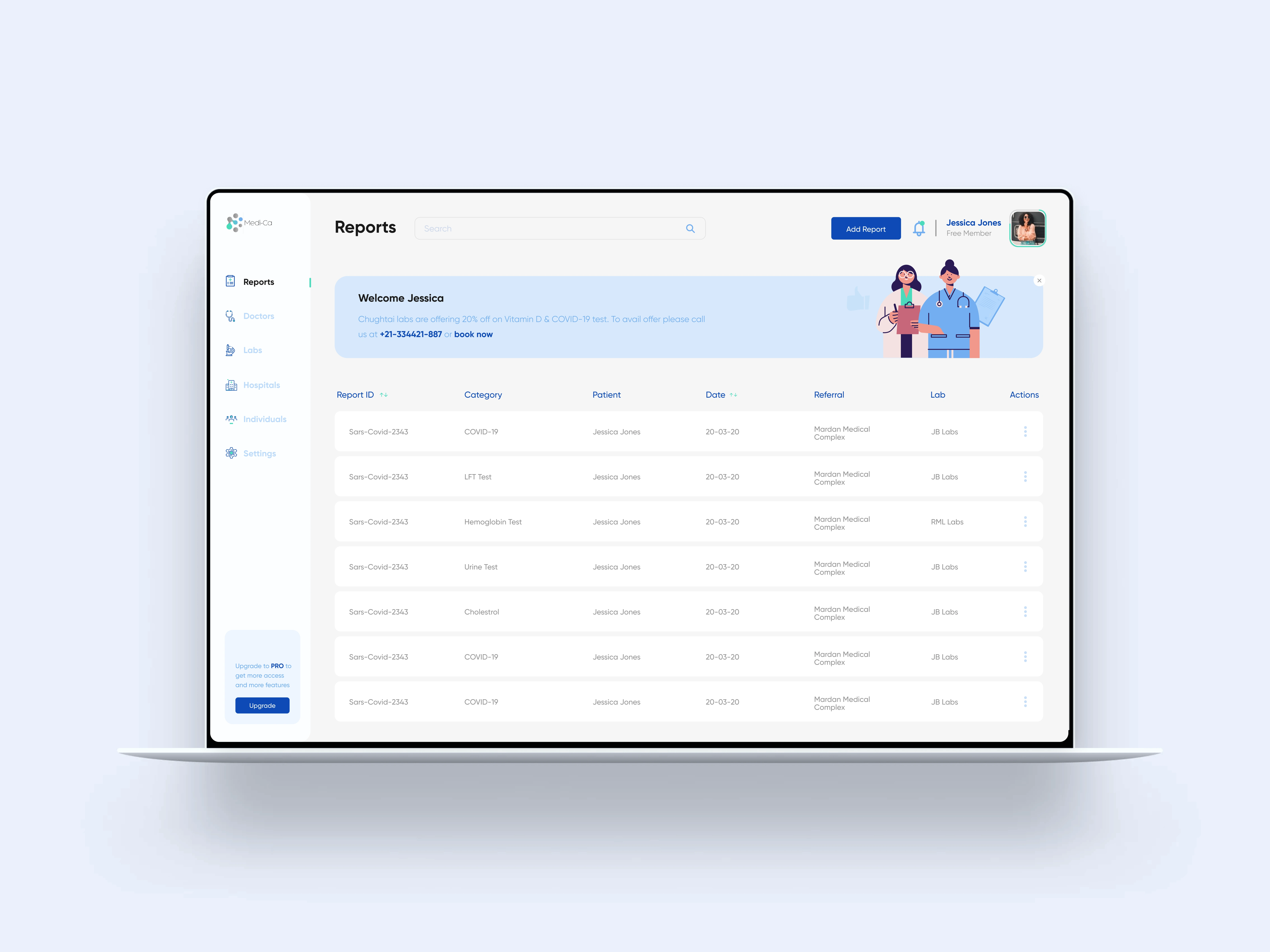 Medi-ca is a secure healthcare ecosystem that empowers patients to access, store, and share medical reports effortlessly. I designed the platform to bridge the communication gap between patients and physicians, ensuring critical health data is always accessible and actionable.