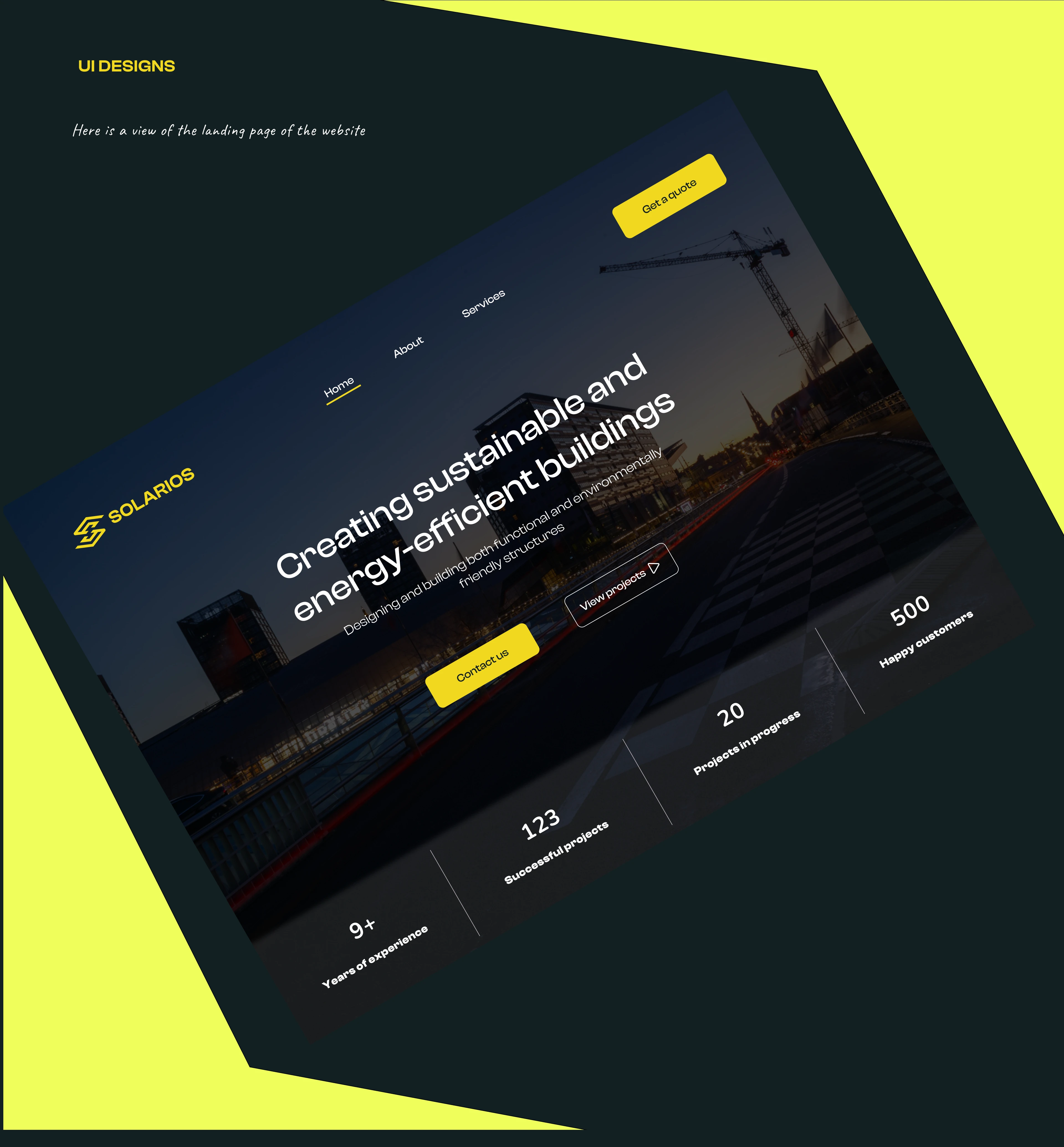 Founded by a team of passionate architects and engineers, Solarios is committed to using cutting-edge technology and innovative design techniques to create both functional and environmentally friendly buildings We work closely with our clients to understand their needs and create customized solutions that meet their specific requirements. Our team has a wealth of experience in designing and building a wide range of projects, including residential, commercial, and industrial buildings. We have a proven track record of delivering projects on time and within budget, and our clients are always impressed with our high-quality work.