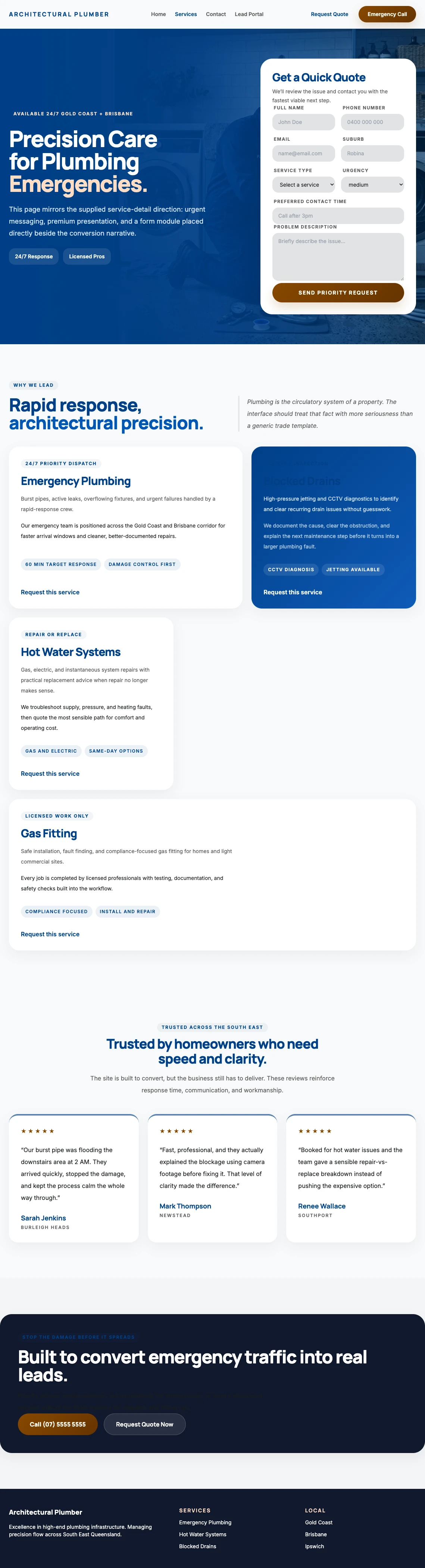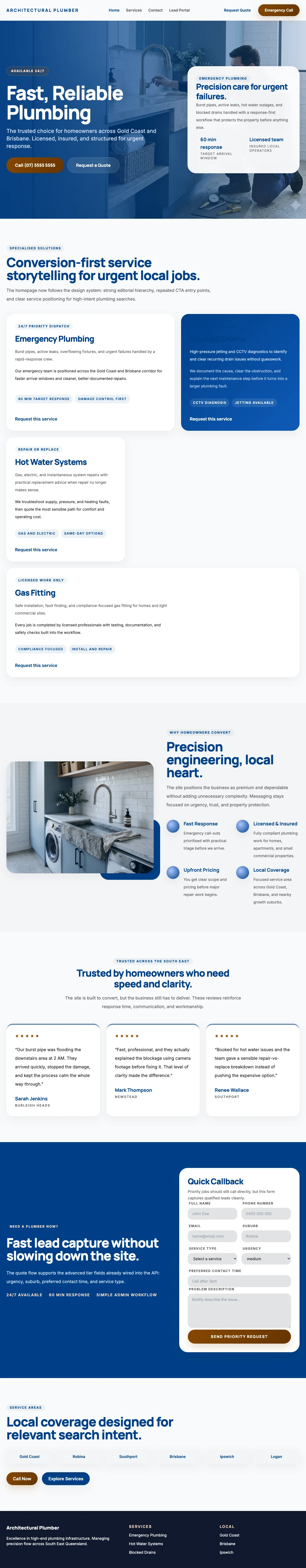 Local service businesses often rely on outdated websites that don’t convert visitors into actual jobs. The goal of this project was to design a modern, conversion-focused website tailored for a plumbing business, prioritising fast contact, trust, and ease of use on mobile devices.
