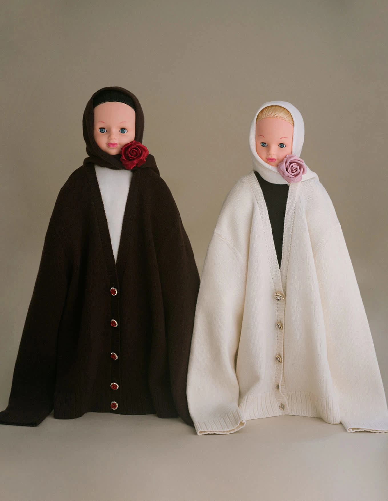 In extraordinary collaboration for our Holiday Campaign, SEEN joins forces with ARADEANCA, Romania's oldest doll factory, delving into the enchanting world of childhood play and self-reflection. The dolls have the very same facial expressions they did in 1963, when their unique look was meant to break down the norms of imported replicas that always appeared too adult for the audience they were intended for. Instead, they reproduce the open expression of a healthy and sensible child.