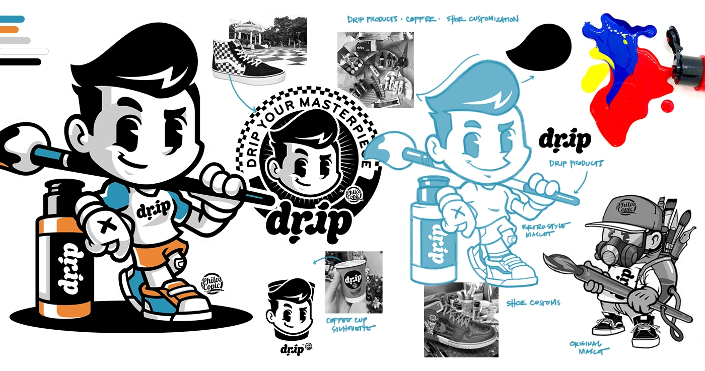 Meet Phil, Drip's newest mascot designed to embody the local shoe customs community and café enthusiasts in the City of Smiles, Bacolod, Philippines. Phil's home is Drip, a hub for shoe customizations and art supplies.