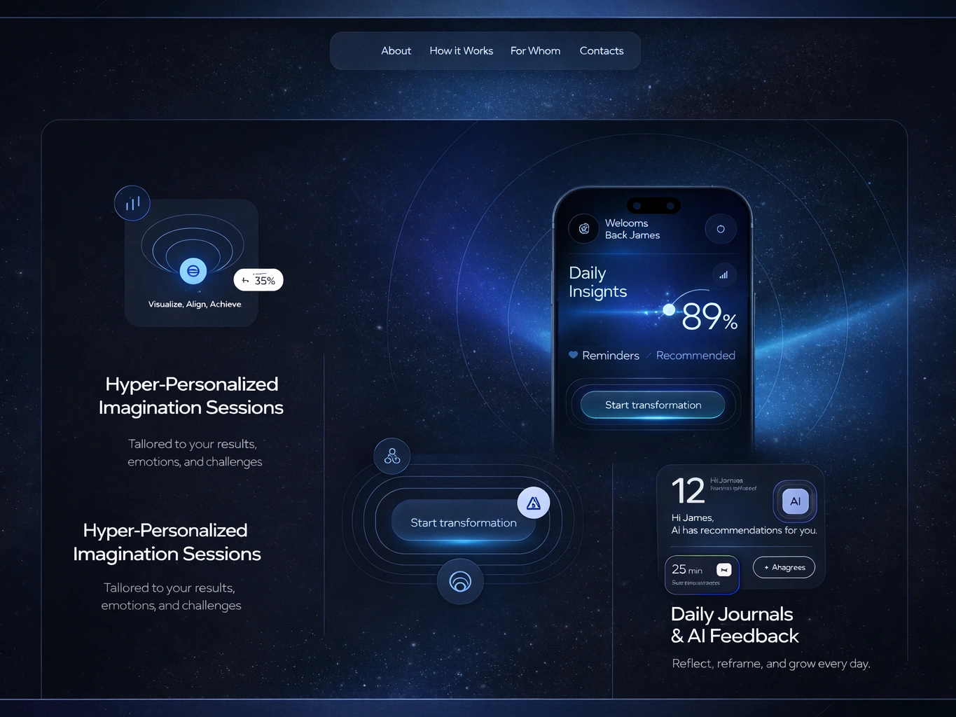 The idea was to create a smooth and immersive mobile experience where users can build better habits, reflect on their emotions and challenges, and receive personalized support through intelligent recommendations. The product combines self-development with modern mobile design to make daily transformation more engaging and consistent.