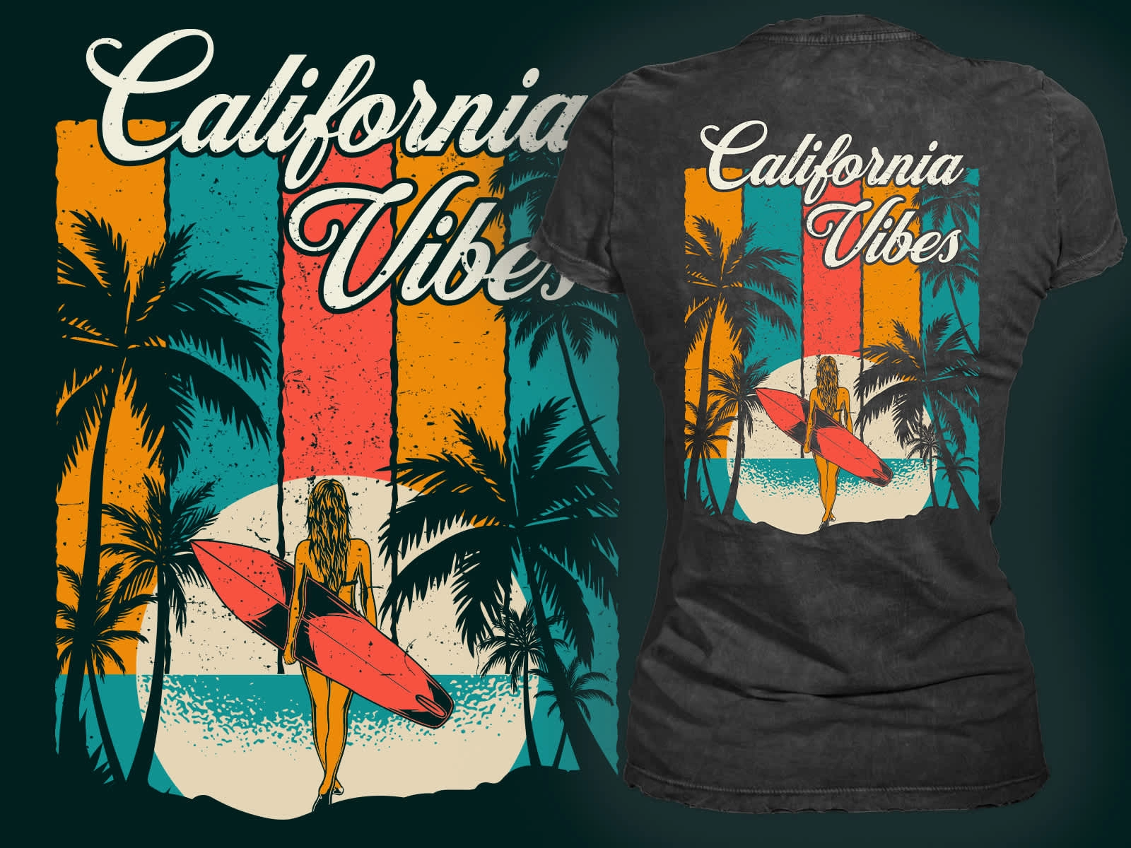 Designed the 'California Vibes' graphic tee, capturing a retro surf aesthetic.