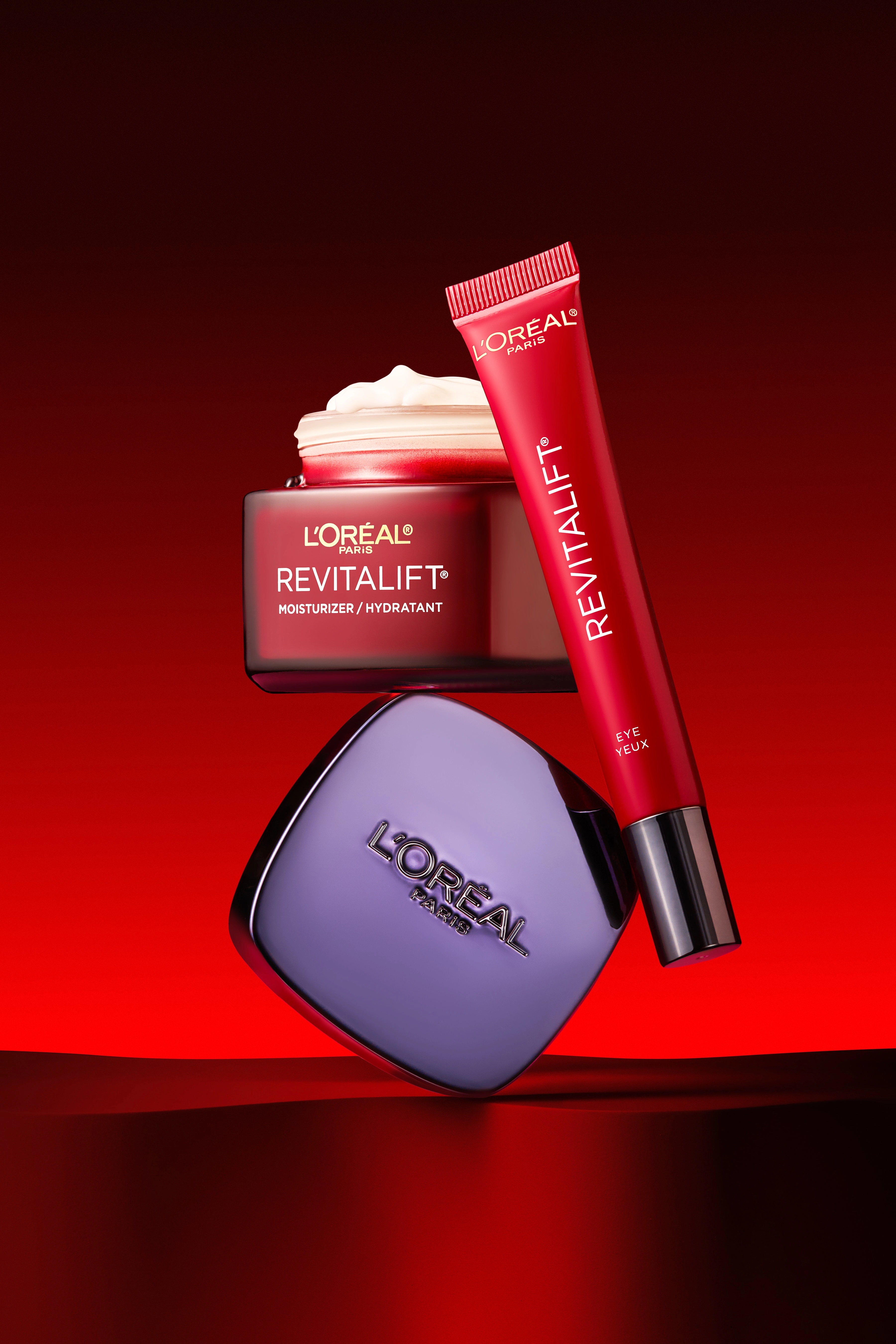 Minimalist, campaign-ready visuals for L’Oréal Paris, designed with negative space, bold red gradients, and stacked compositions for versatile brand use.