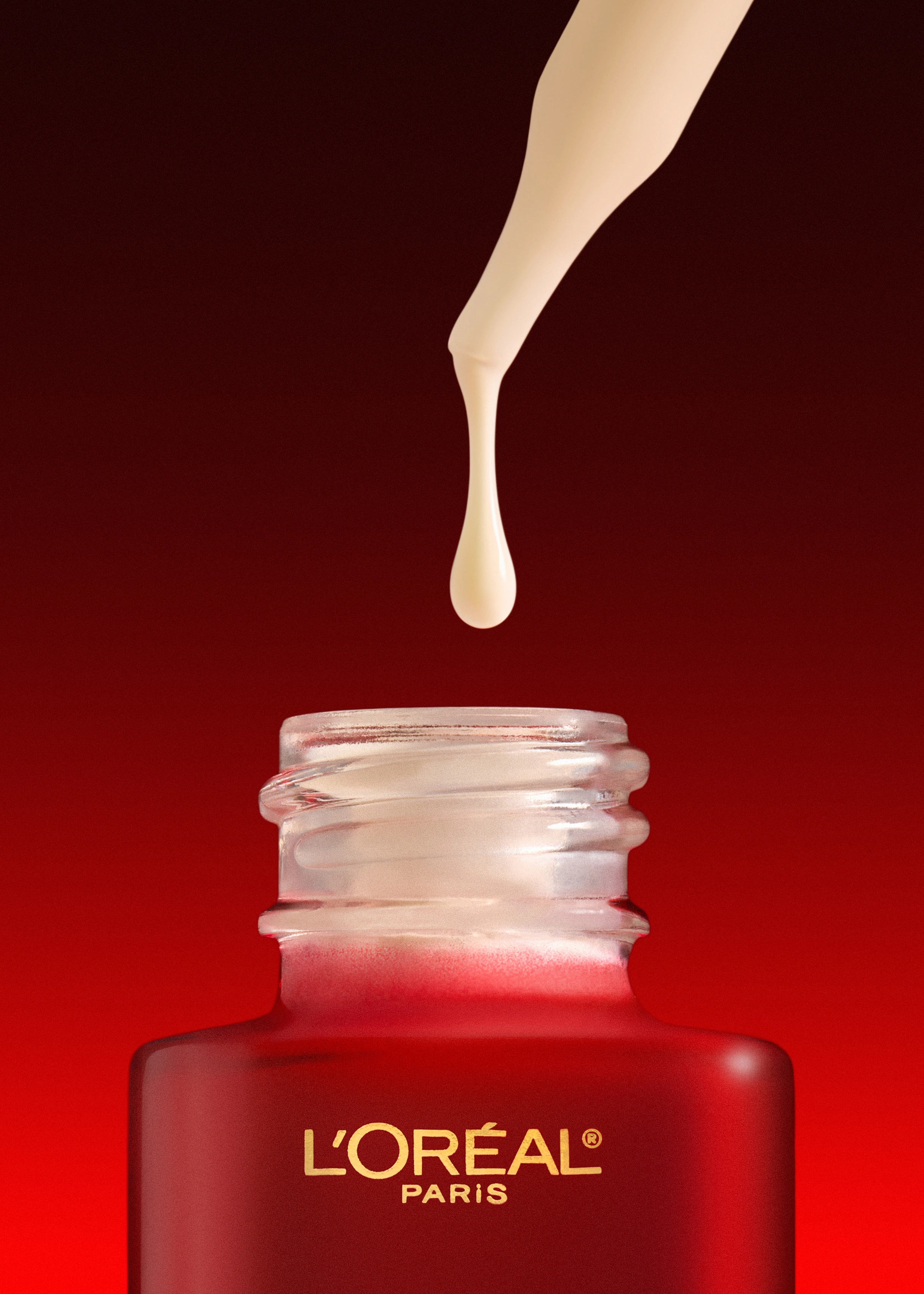 Droplet detail shot highlighting serum viscosity and controlled liquid motion.