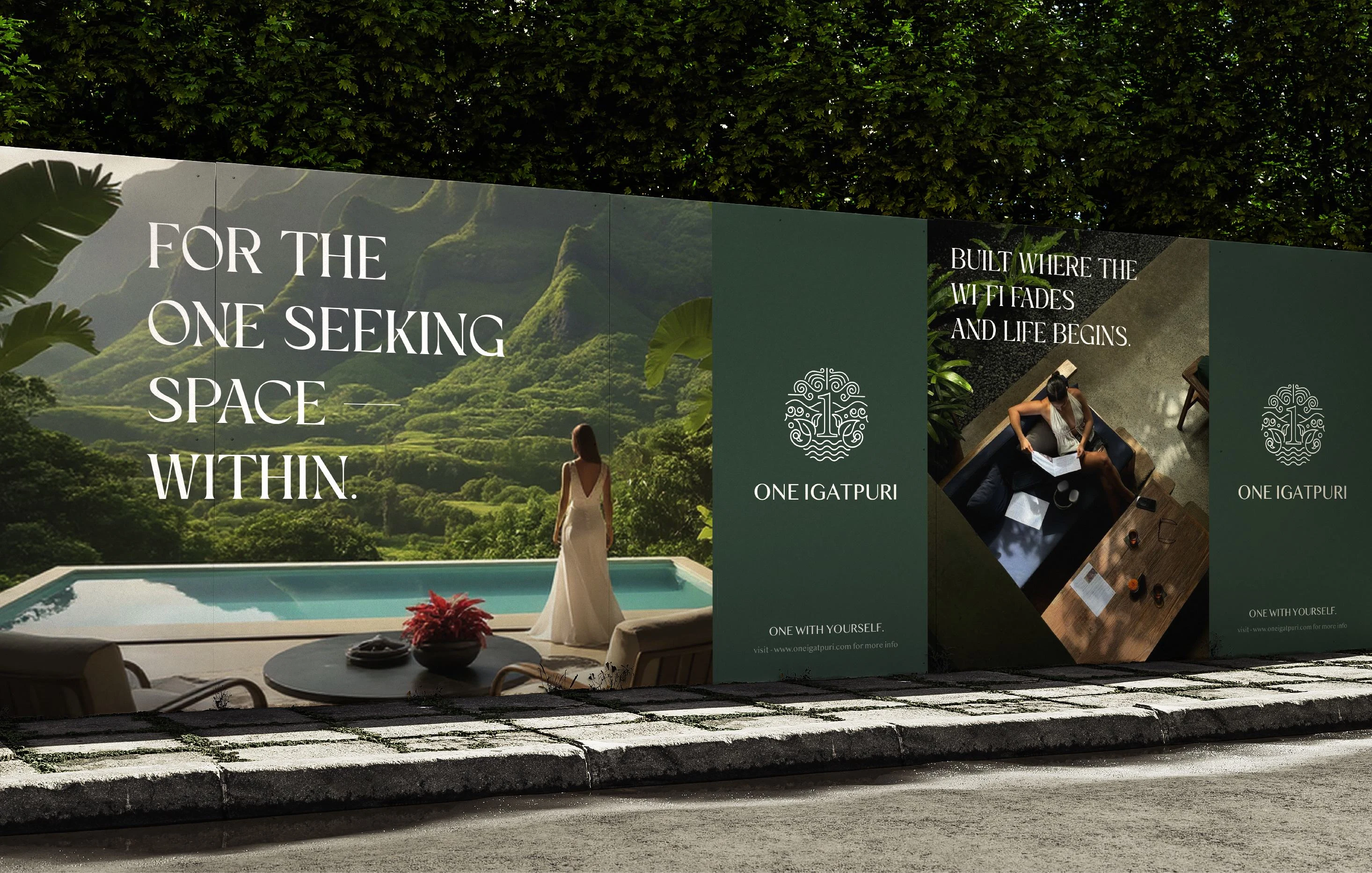 One Igatpuri is an exclusive gated community of 12 luxury bungalows nestled in the hills. The target audience was not just looking for a house, but a sanctuary away from the chaos of the city.