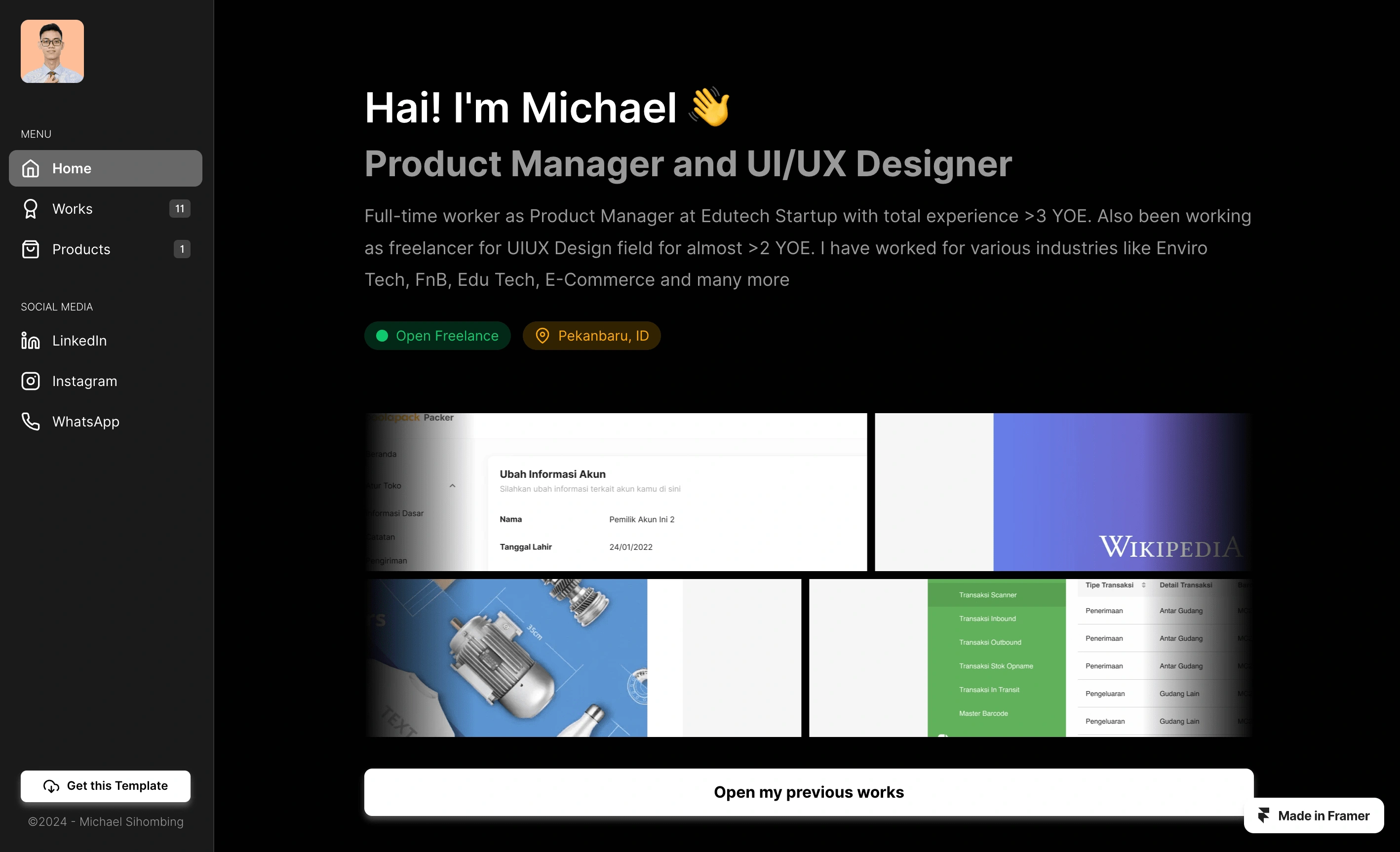 This portofolio also available in Dark and Light mode. You can also try it with tablet and mobile view. All the content using Framer CMS.