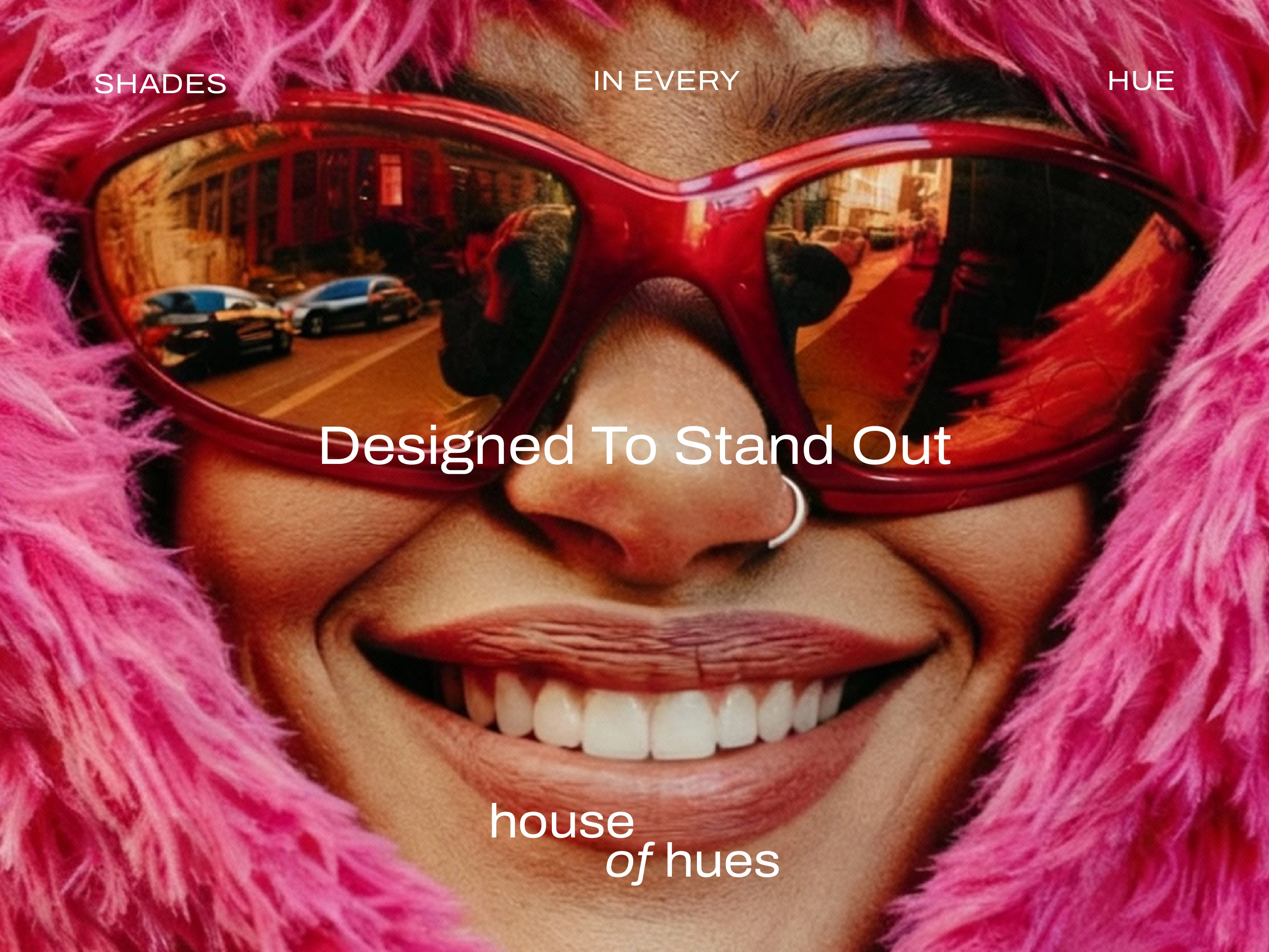 House of Hues is a modern eyewear identity built around bold colour, expressive frames and a clean editorial aesthetic. The visual direction blends fashion-driven imagery with minimal typography to show how eyewear can shape personality, attitude and style. Rooted in colour storytelling, each visual explores a different mood from bright statement frames to soft embossed textures and high-contrast signage. The result is a refined and contemporary identity that feels fresh, confident and timeless across every touchpoint.