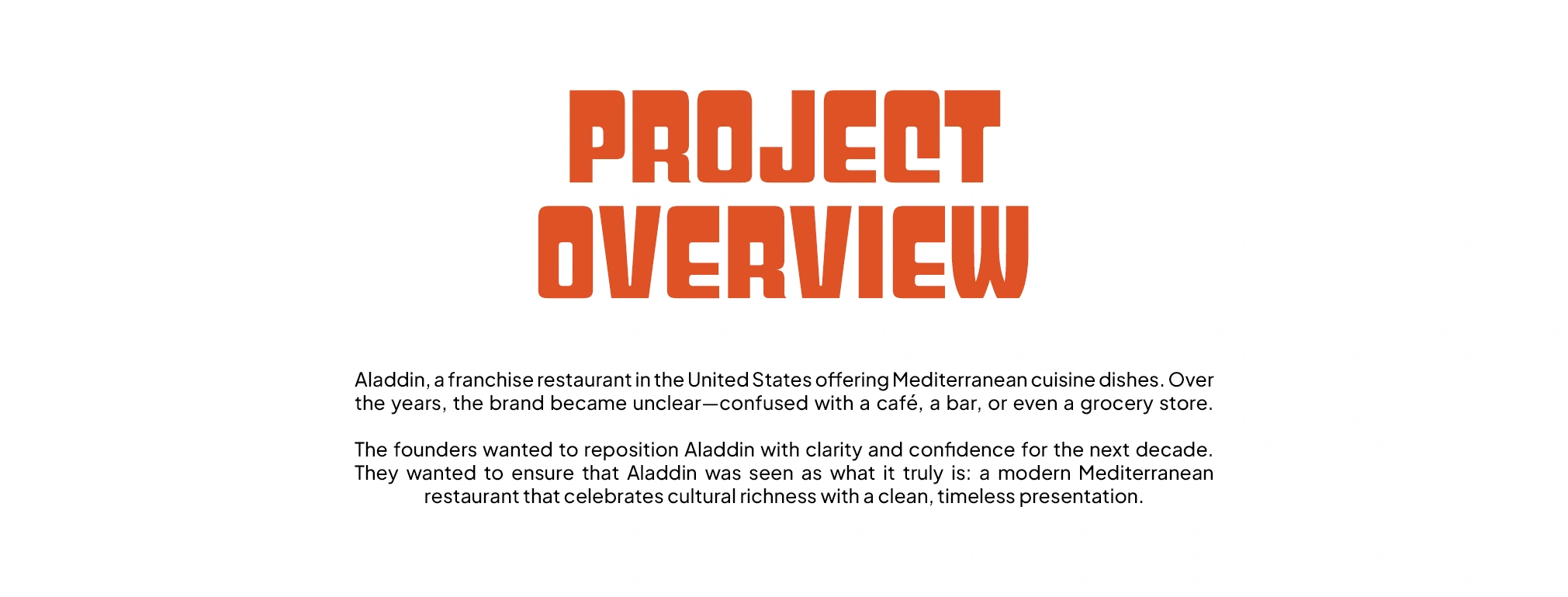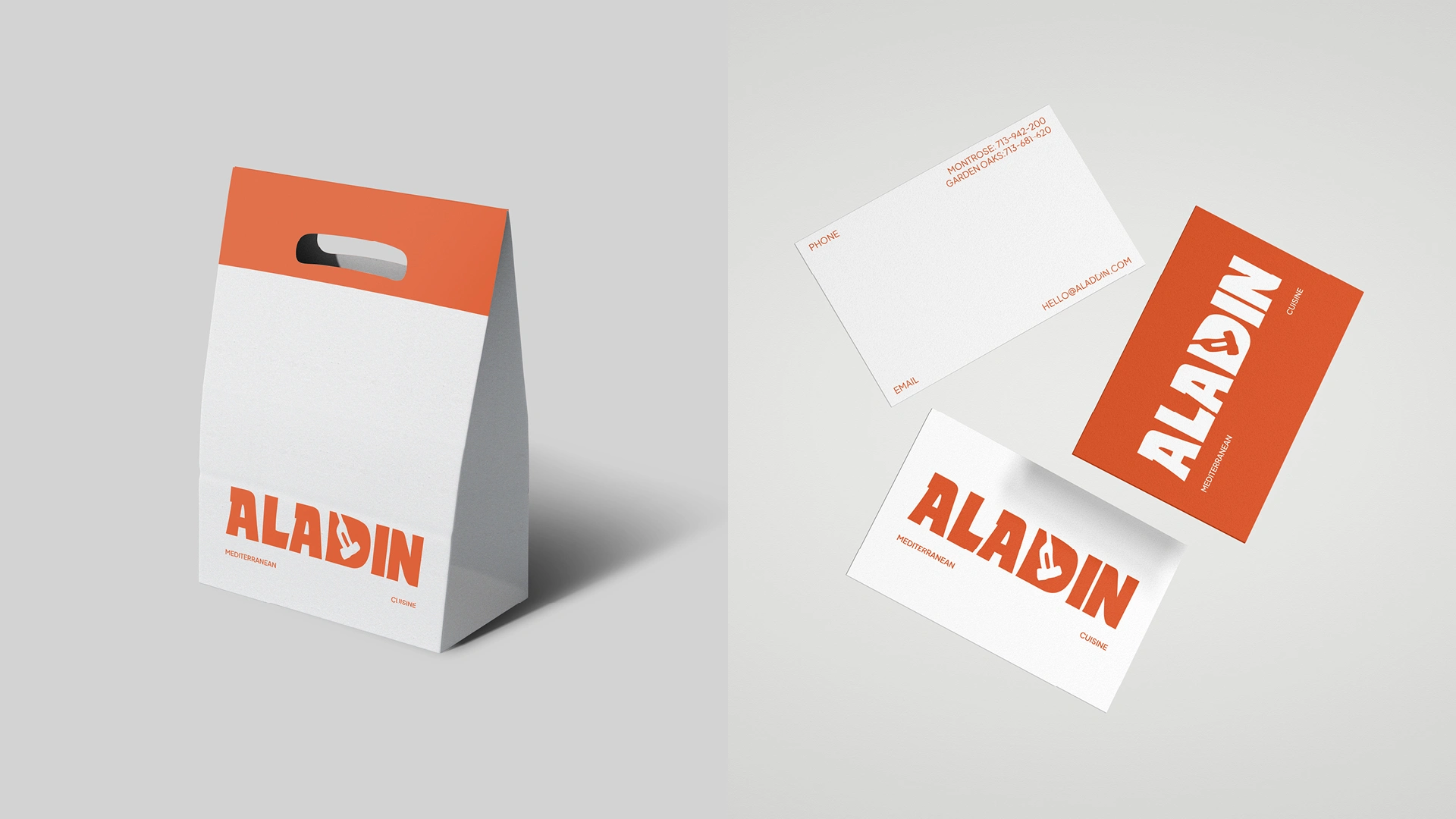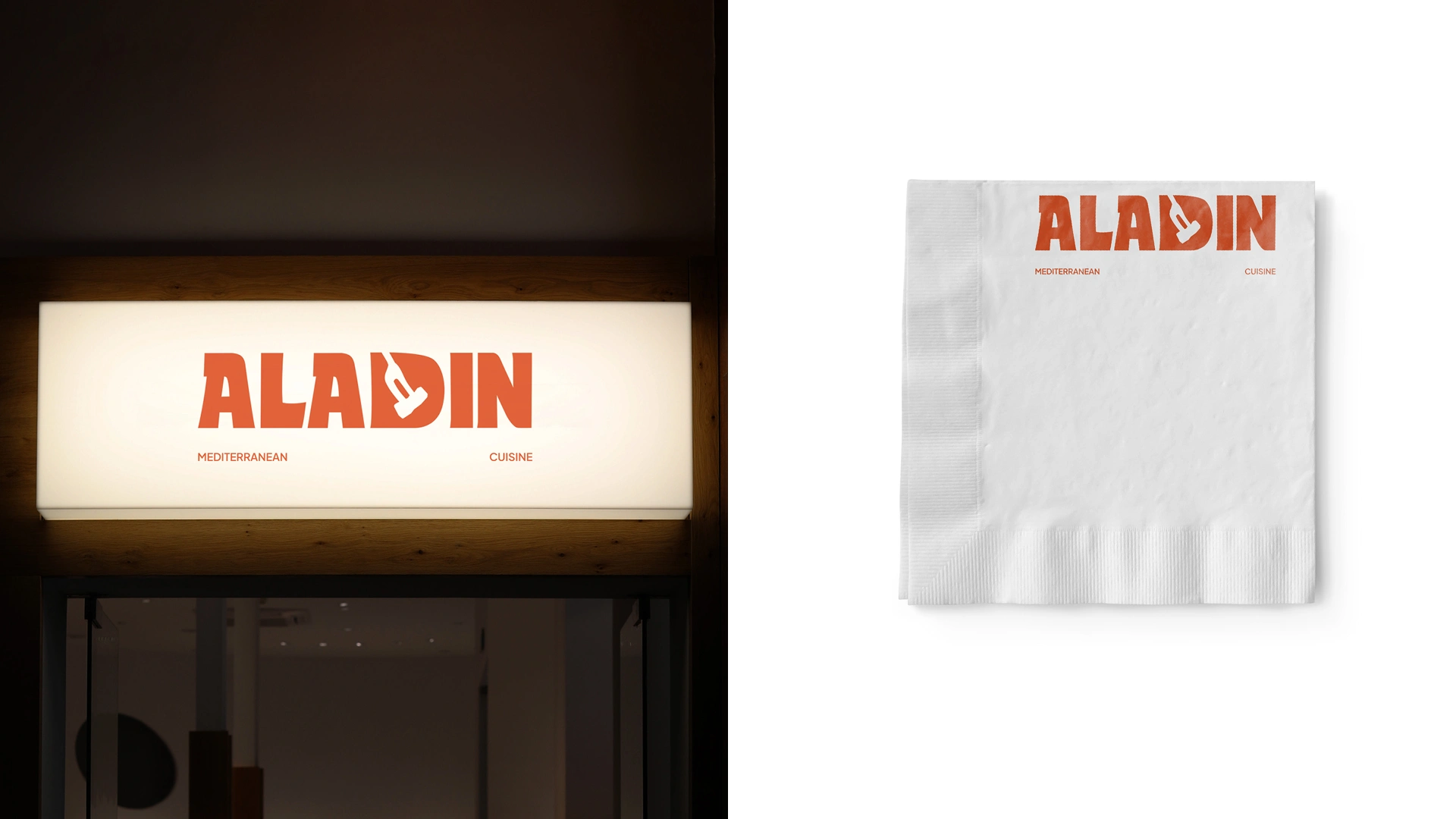 Reimagined Aladdin’s visual identity with a bold logotype, a fresh palette, and unified branding that enhances customer perception and restaurant presence.