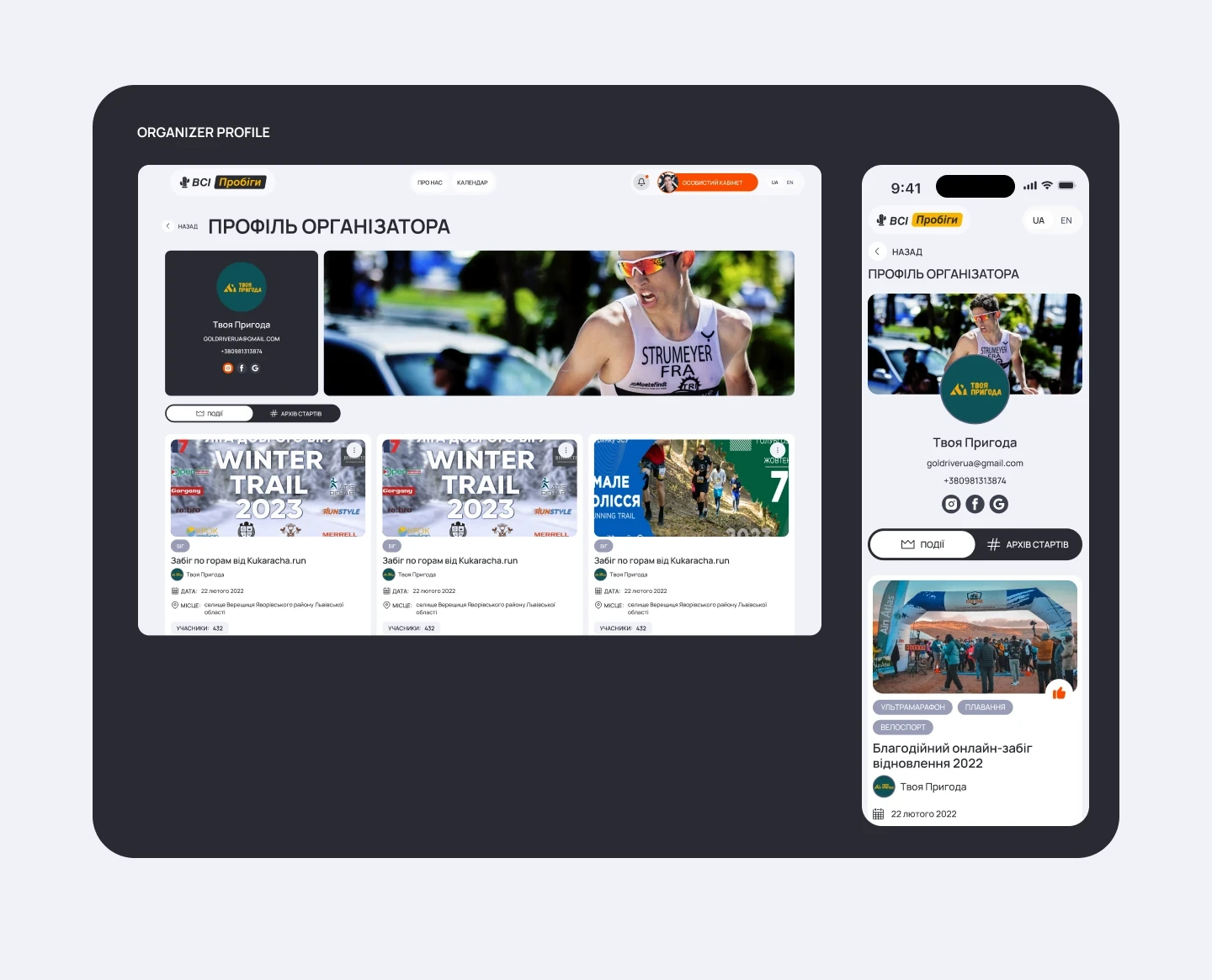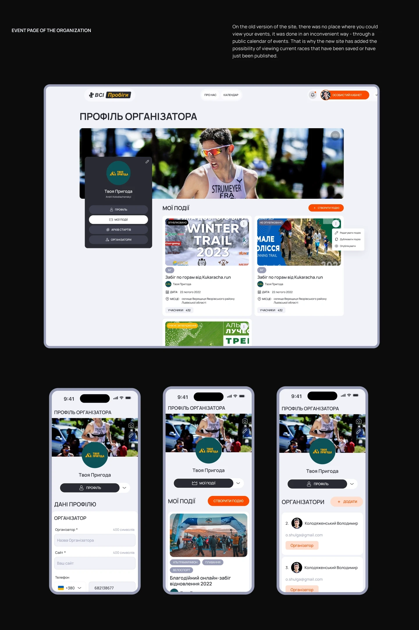 VsiProbigy is an all-Ukrainian running calendar, where race organizers can publish their events so they can be found more easily.