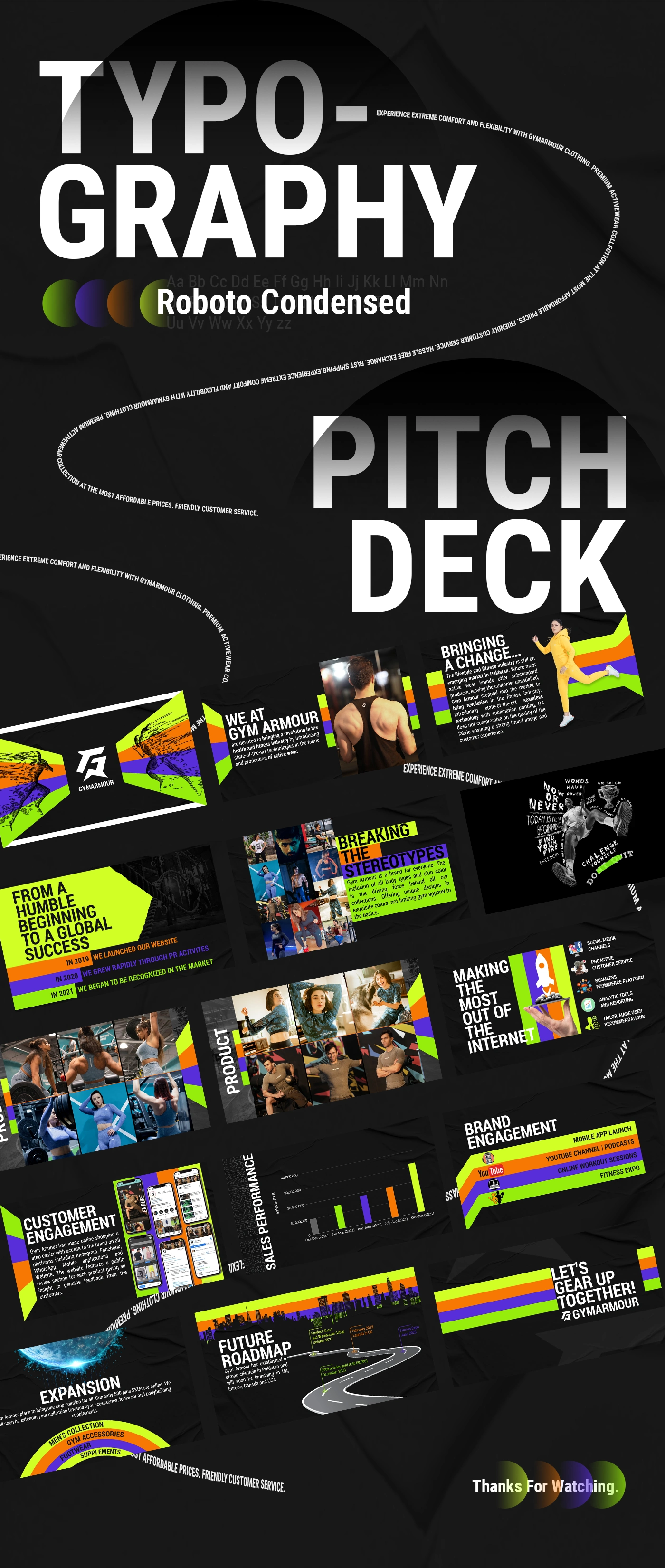 I designed a bold and engaging pitch deck for a gymwear clothing brand to showcase its vision, product line, and growth potential. The deck was crafted to resonate with fitness enthusiasts and investors by combining sleek visuals with a strong brand story.