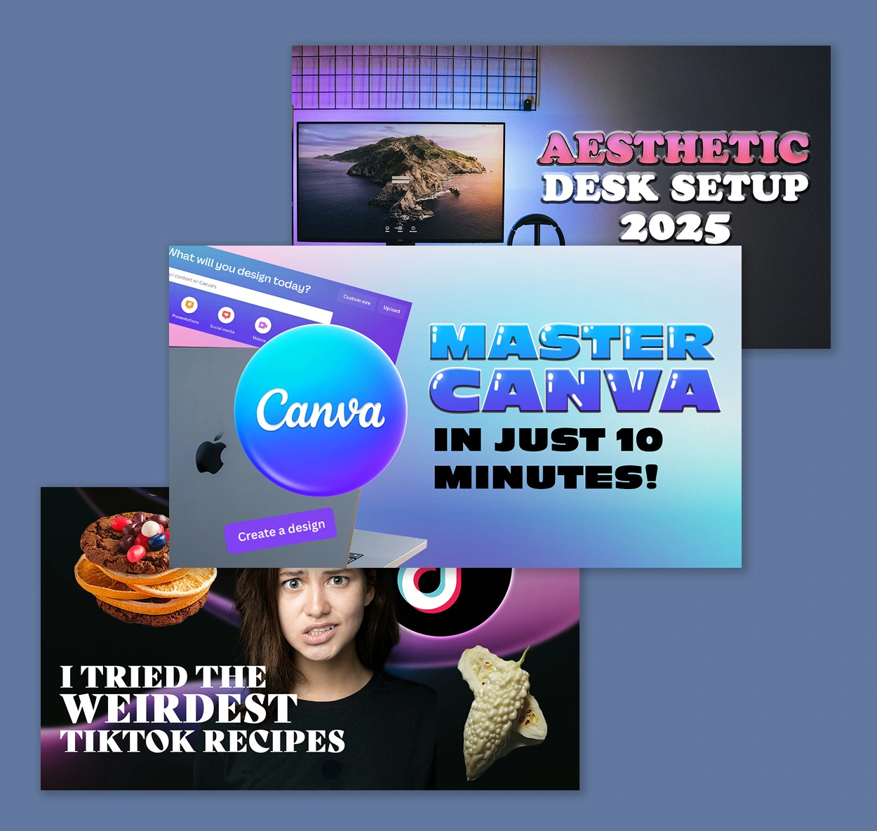 This portfolio project showcases three custom YouTube thumbnails created using Adobe Photoshop. Each thumbnail represents a different content category, educational, lifestyle, and entertainment. I focused on using bold typography, strong visual hierarchy, high-contrast imagery, and effective composition to ensure each thumbnail is engaging and optimized for users. The project demonstrates my ability to create click-worthy designs that reflect the tone and purpose of the content while aligning with YouTube’s practices and trends.