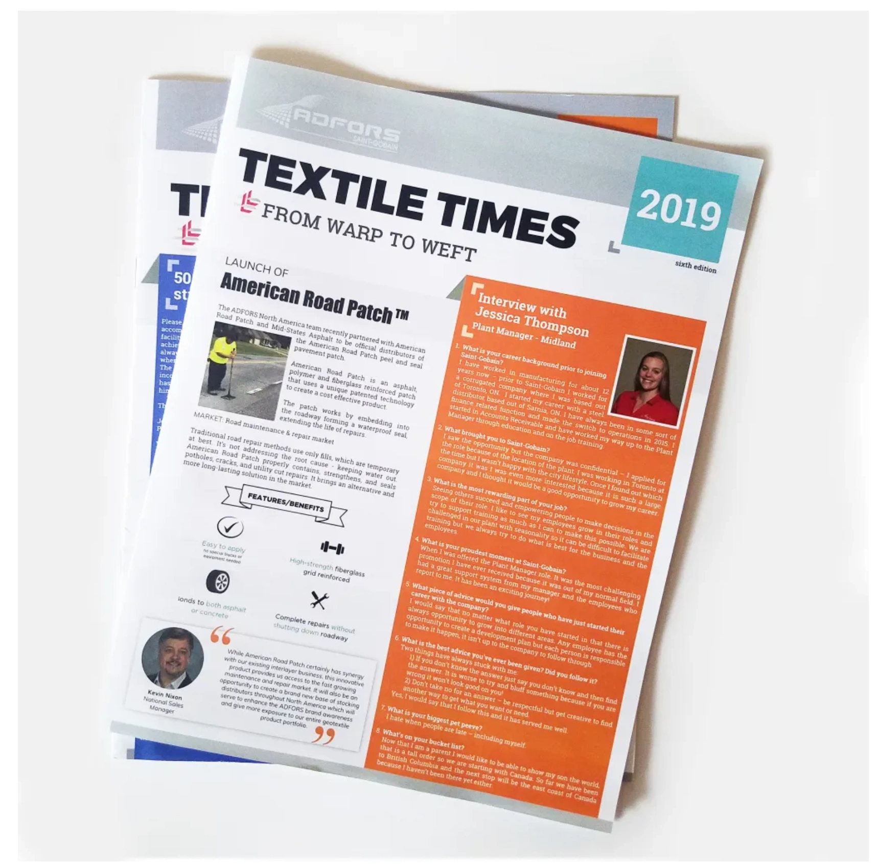 Saint-Gobain ADFORS is a commercial and industrial textile company that offers solutions based on a complete range of textile and coating technologies using fiberglass yarns and synthetic fibers. As a in-house Marketing and Graphic Design Associate at ADFORS for over two years I designed marketing material including web design, print and publication work.