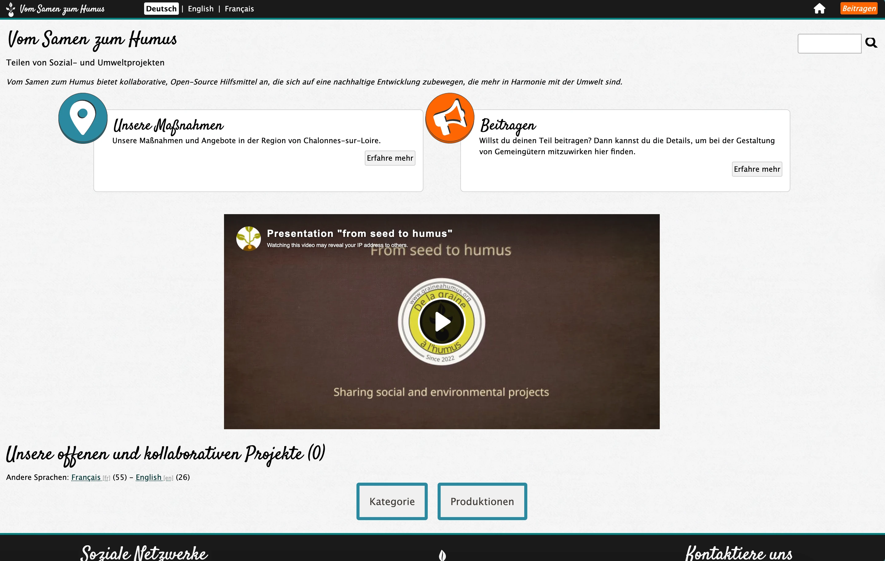 Pro Bono Work for De la graine à l'humus, to translate website from English to German.