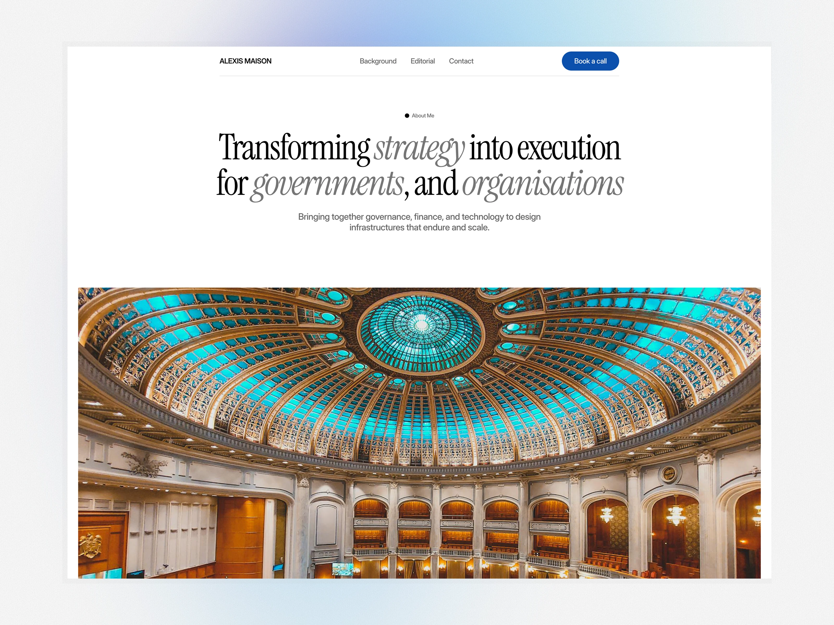 The project involved adapting the Peakline Framer template into a professional website that communicates credibility, expertise, and measurable impact. The goal was to position Alexis Maison as a trusted consultant operating at the intersection of governance, finance, and technology.