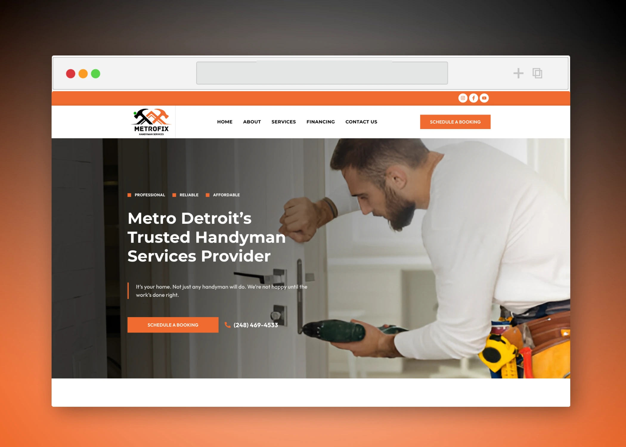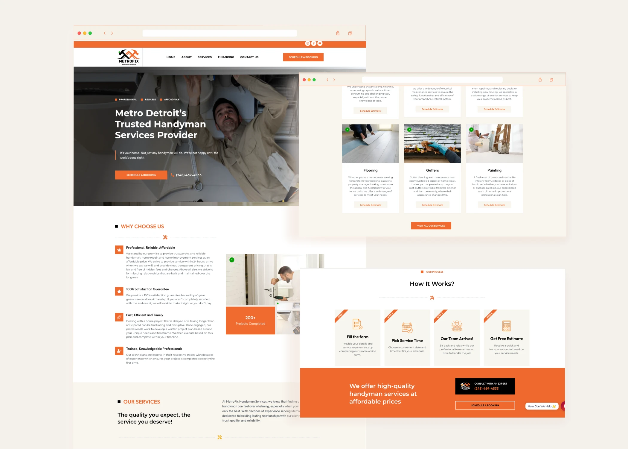 I developed a clean, efficient website for MetroFix Handyman Services that clearly communicates their extensive home-repair offerings and their commitment to “professional, reliable, affordable” service. Built with WordPress, designed using Elementor, and optimized with Yoast SEO, the site allows homeowners to easily explore services like drywall repair, flooring, electrical work and more, then request a free estimate. The new site strengthens MetroFix’s online presence, supports lead generation and reinforces their reputation for trust and quality.