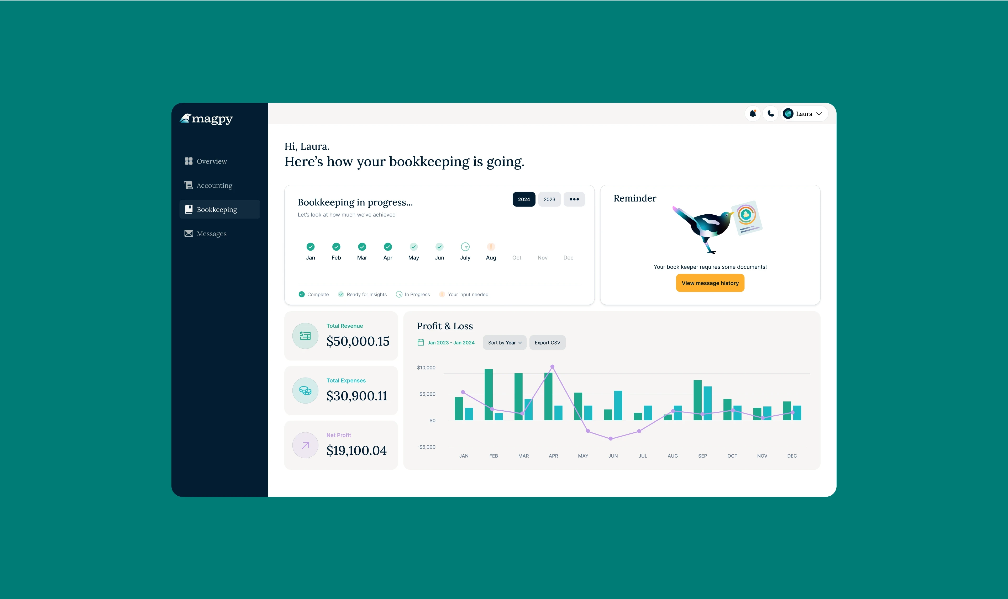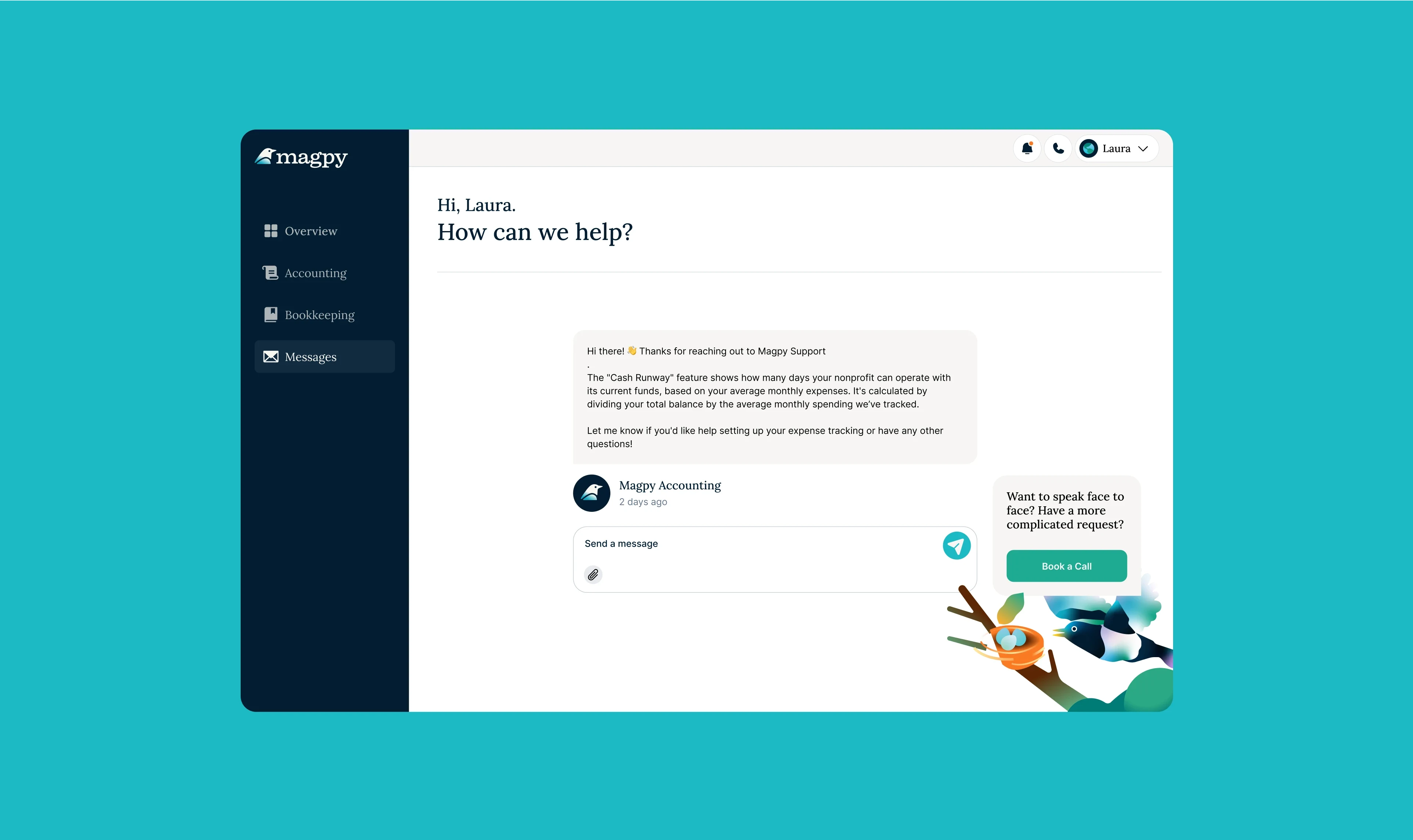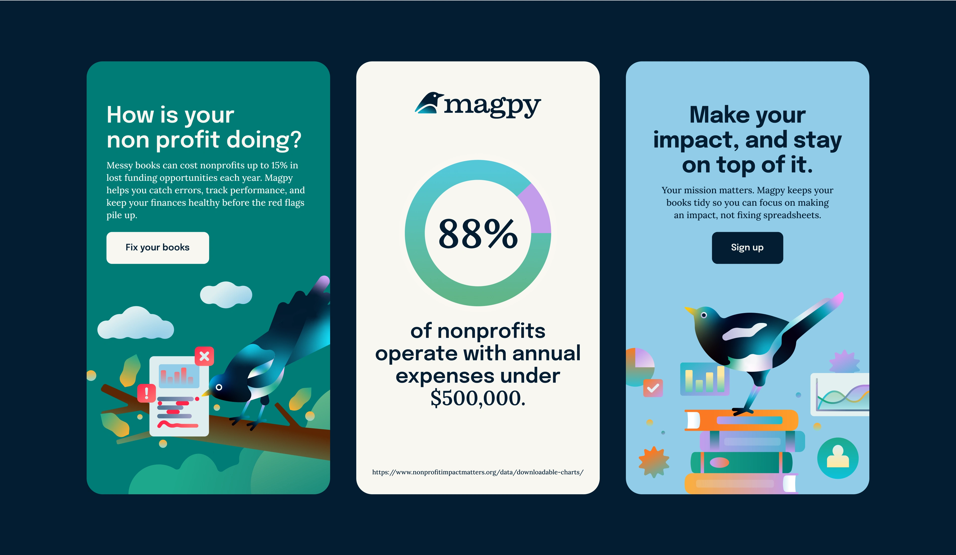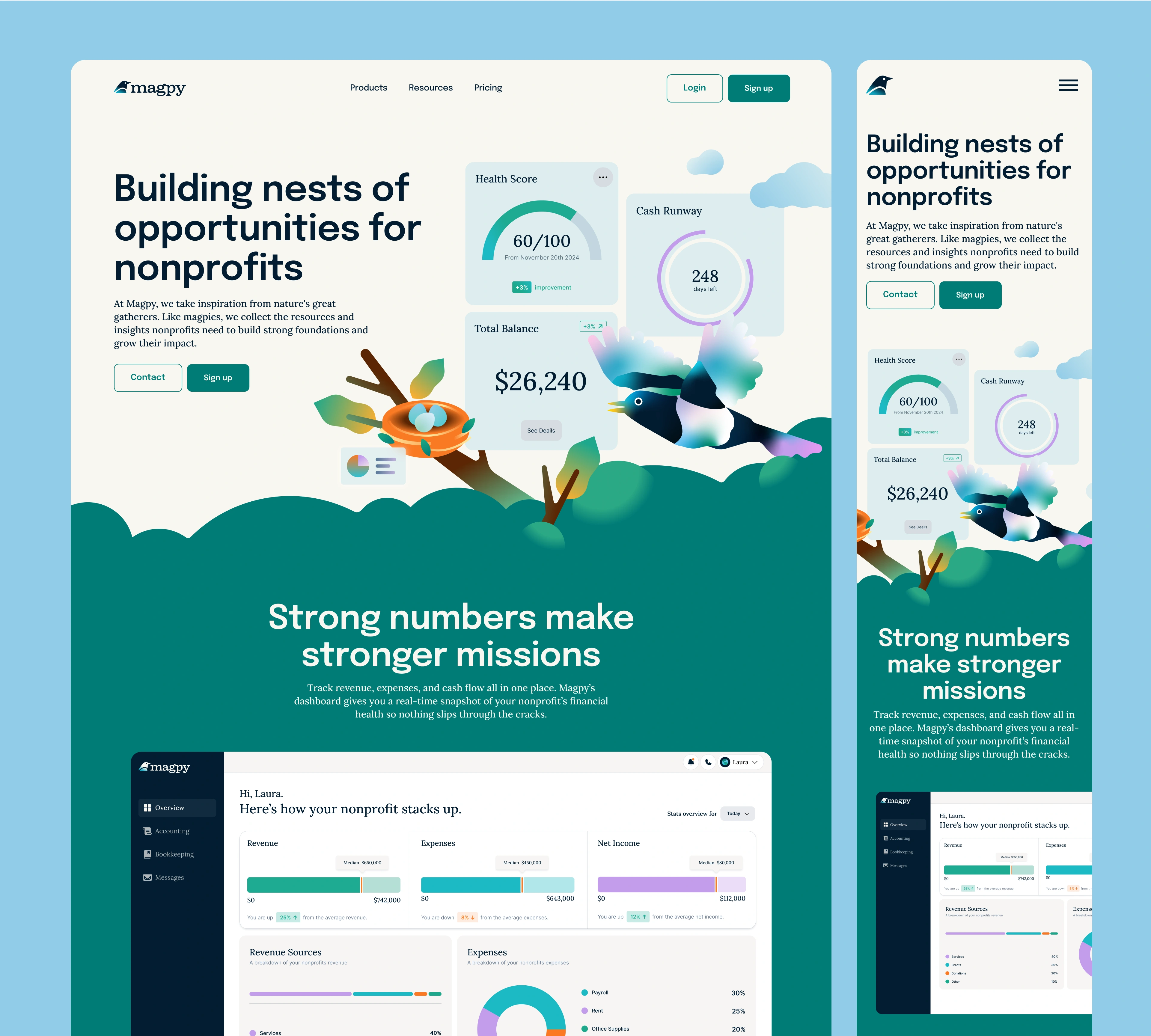 Created a clean, approachable brand and product design for Magpy, a tool that helps nonprofits manage finance.