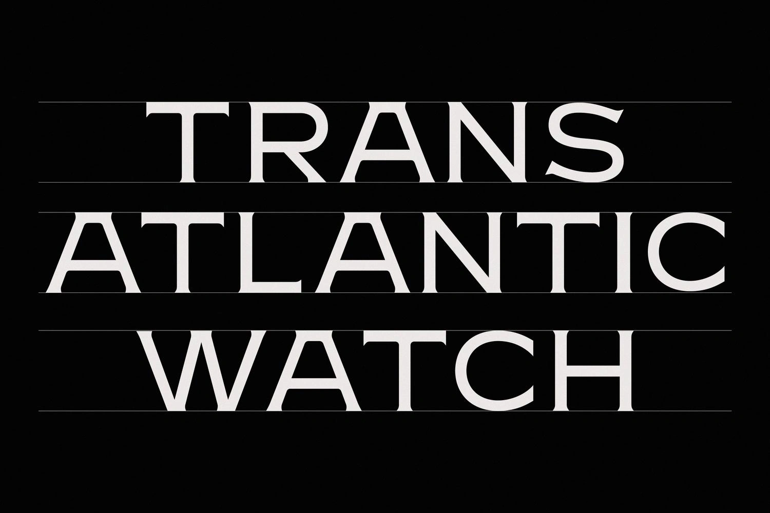Typographic character design for the visual identity of The Transatlantic Watch Company, created for Matthieu David Studio. The capital letters and cartouches were custom designed for this watch brand, which draws inspiration from the aesthetics of historical watchmaking.