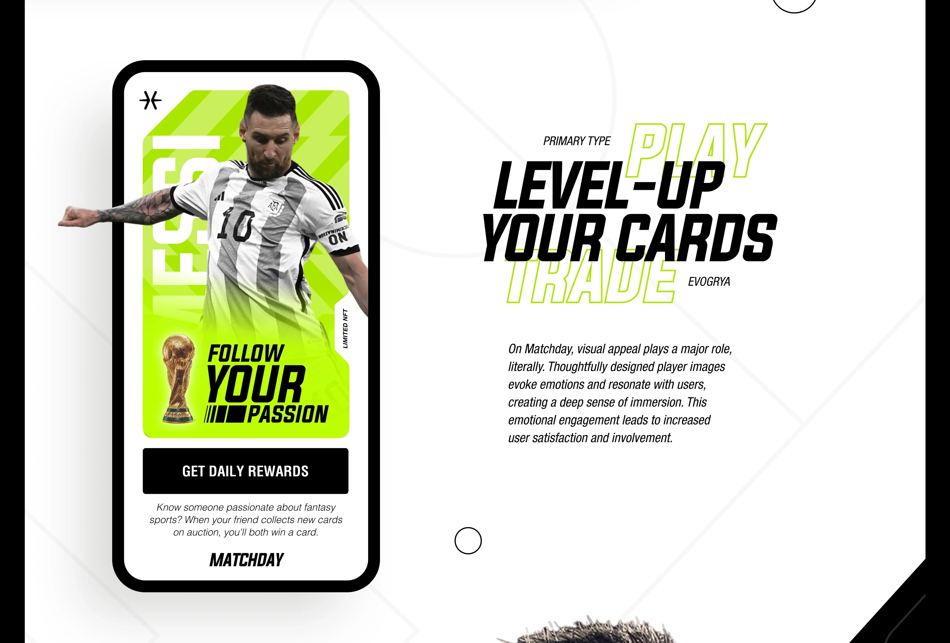 Matchday is a soccer-themed NFT marketplace where users can explore, trade, and collect player cards—each one crafted with unique attributes that influence gam…