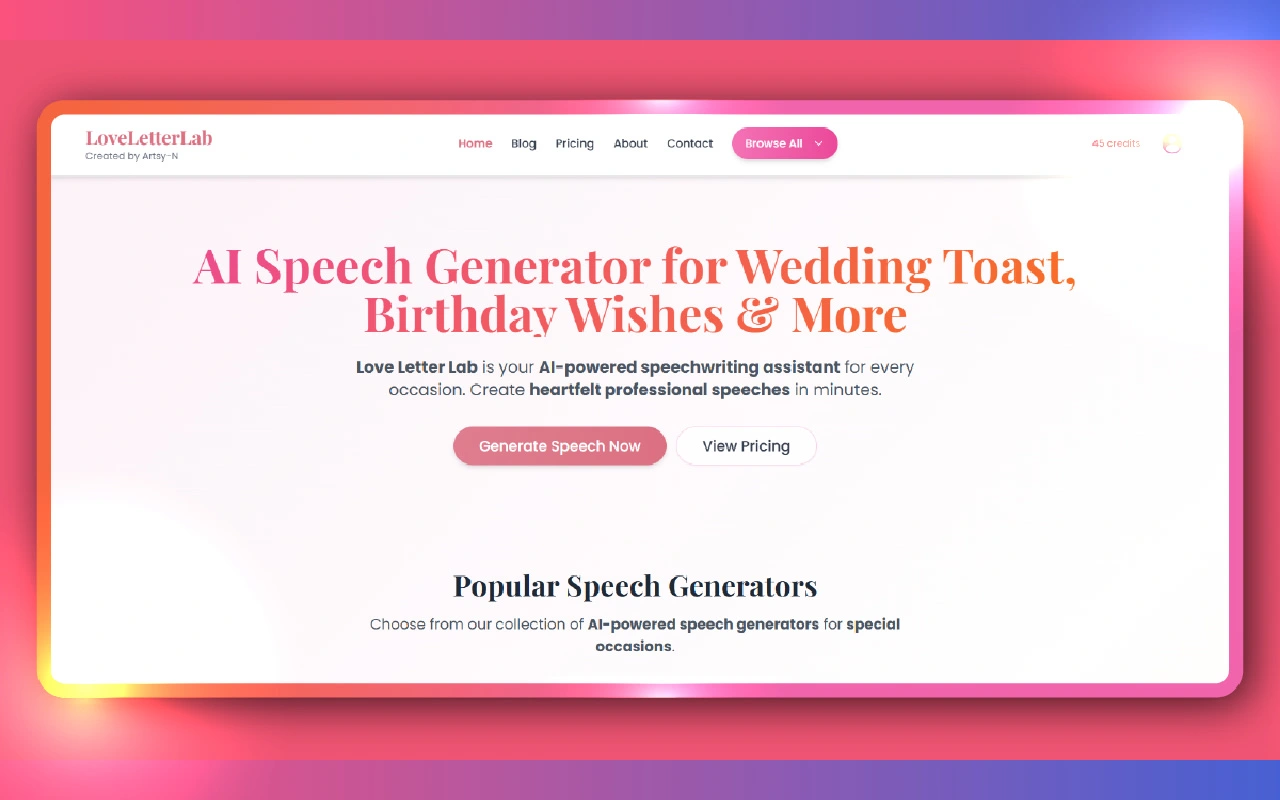 Clear Value Proposition: Emphasizes what users can do and the benefits (heartfelt, personalized speeches, many occasions).
