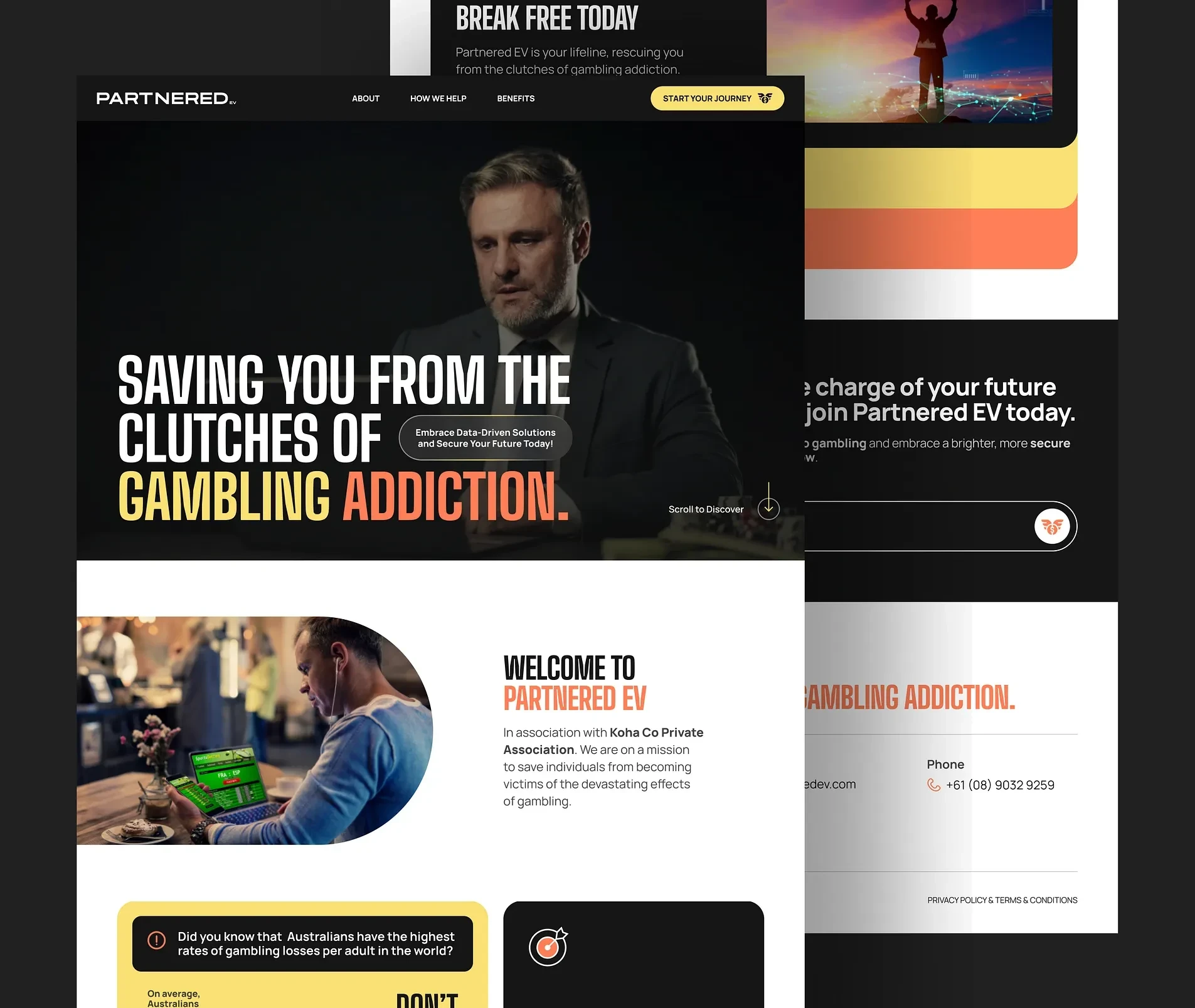 Have a look at this dynamic and stylish landing page I designed for a brand who helps those who are addicted to betting and gambling be free.
