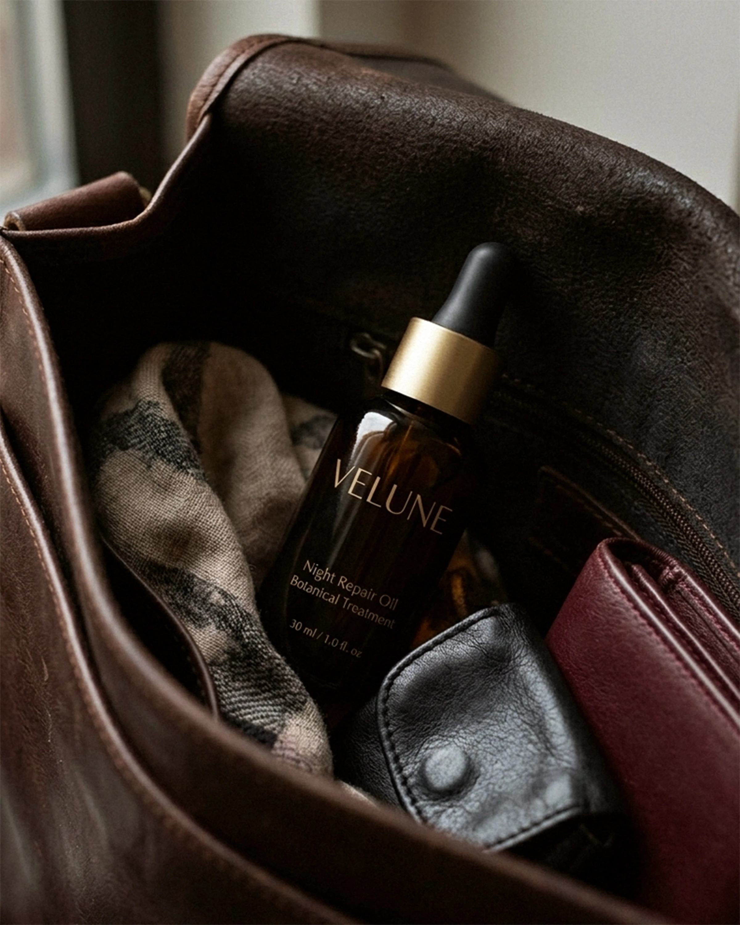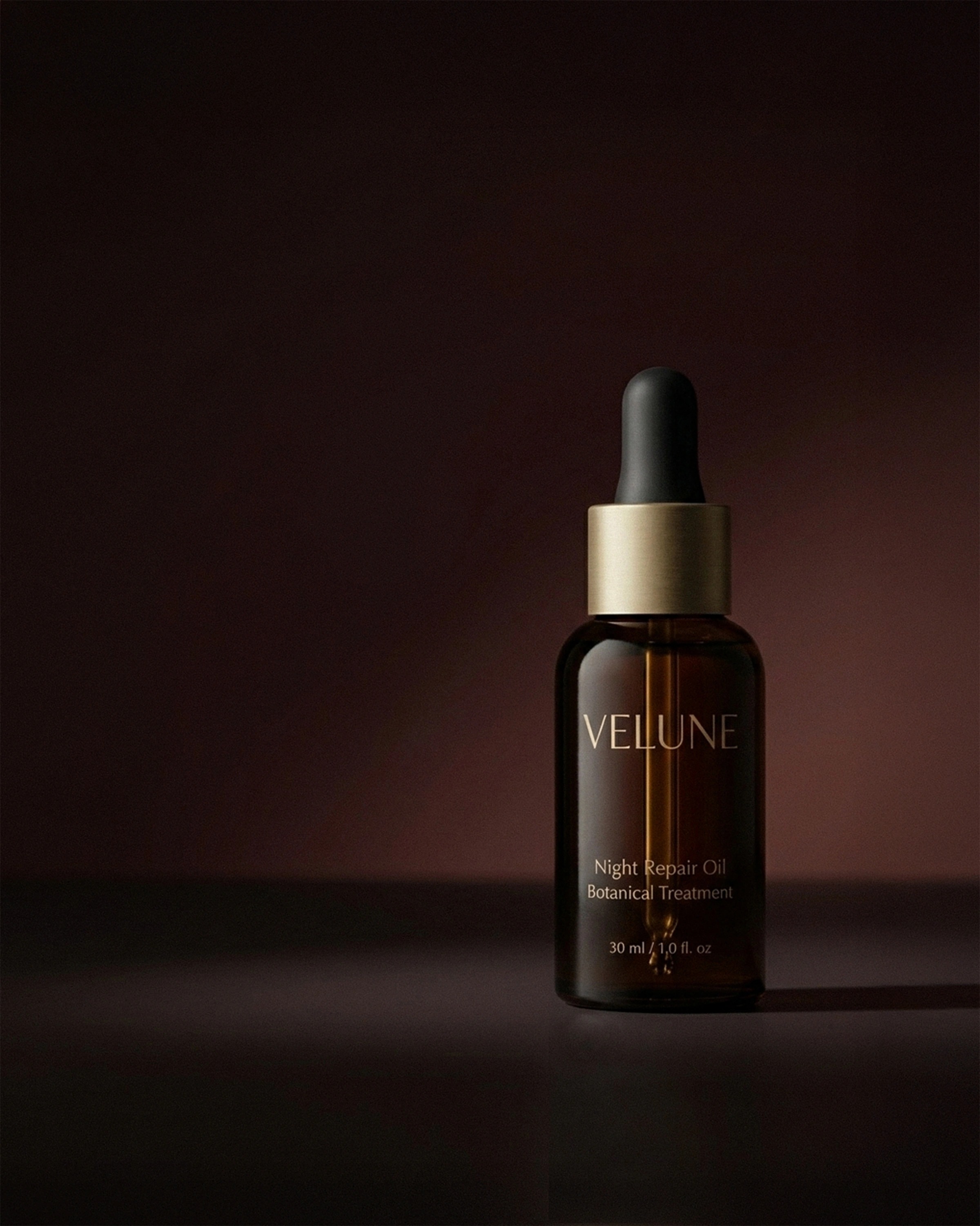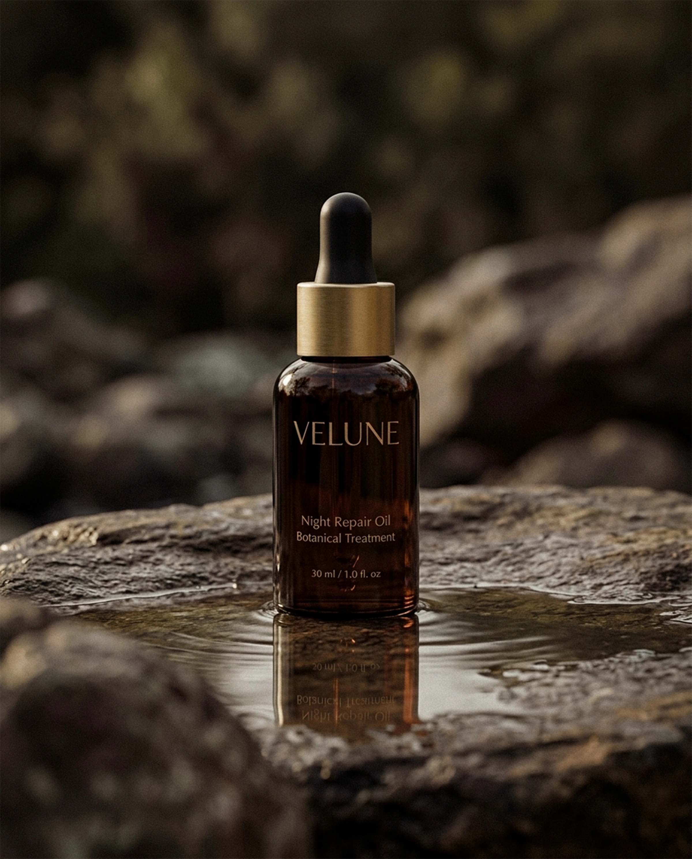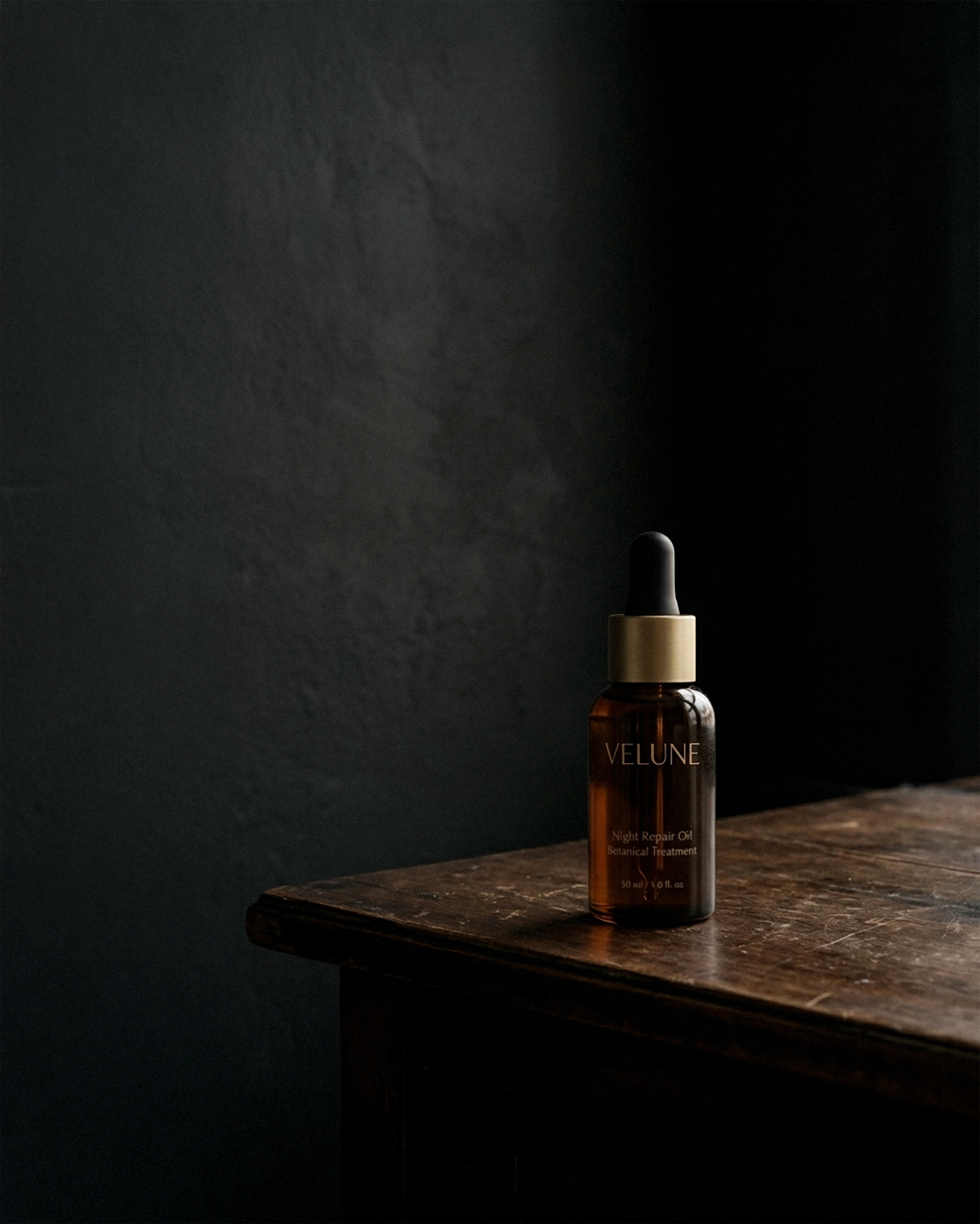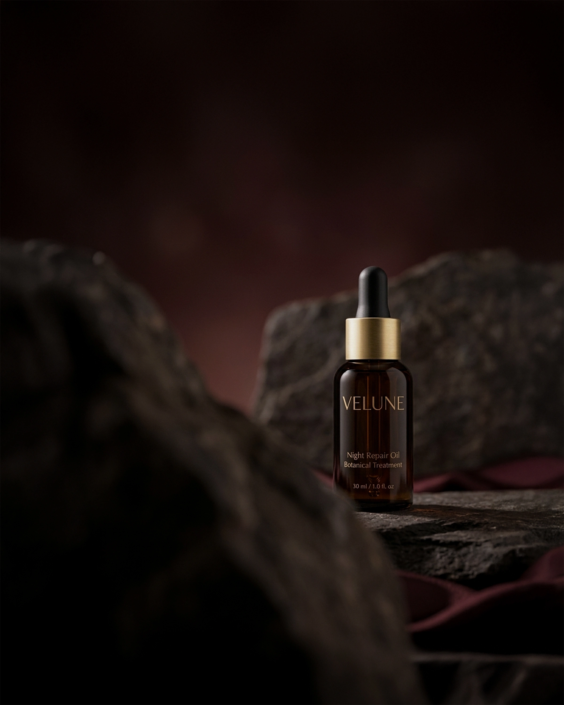 Night Repair Oil Visual Direction & Image A series exploring texture, light, and tone through a restrained, cinematic approach. This project focuses on balancing product clarity with atmosphere. Natural textures, controlled lighting, and a muted color palette were used to create a calm, high-end visual language. Some images were developed using AI-based workflows and refined through compositing and color grading.