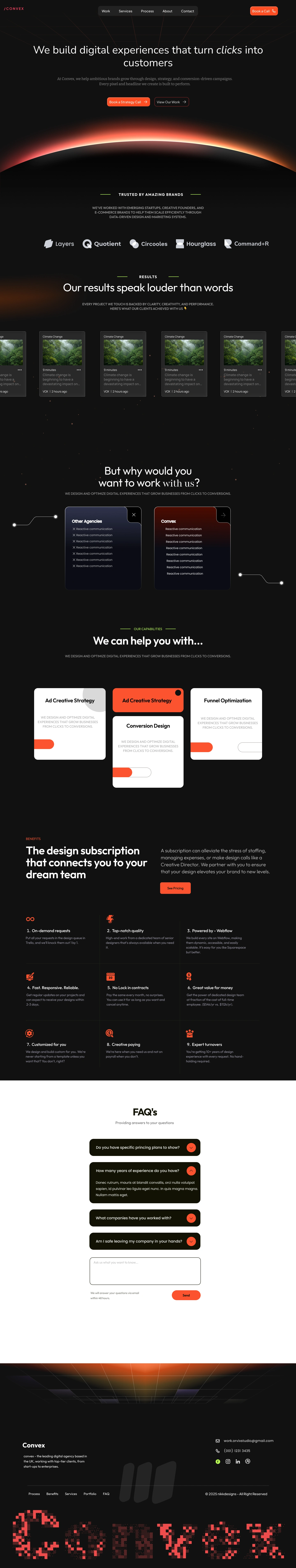 I designed Convex as a conversion-focused system — a landing page template that agencies can adapt to showcase their services, process, and proof while keeping the user’s focus on trust and action.