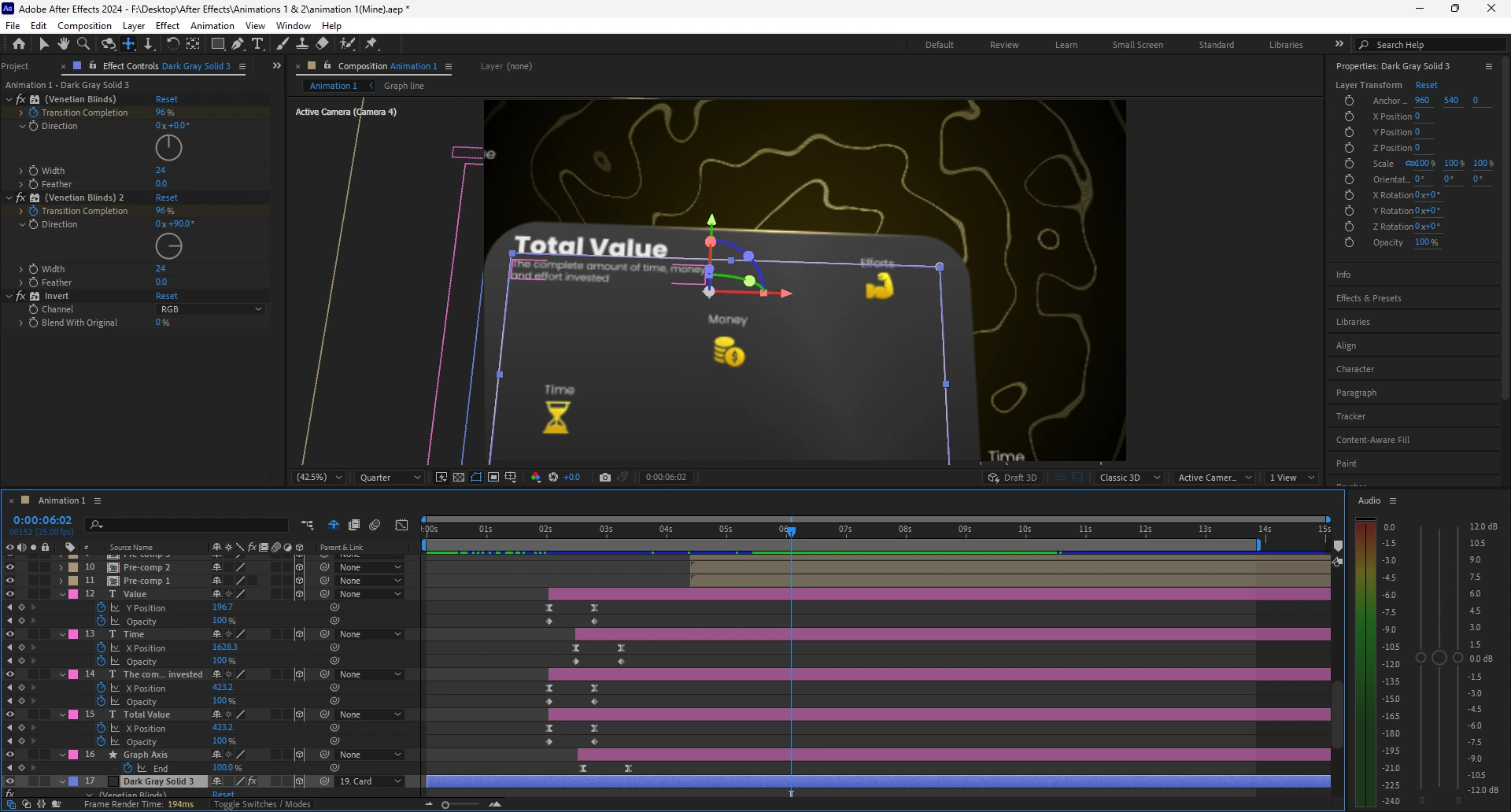 I created a short motion graphic to visually explain the relationship between time, money, and effort — three factors that define productivity, project outcomes, and value creation.