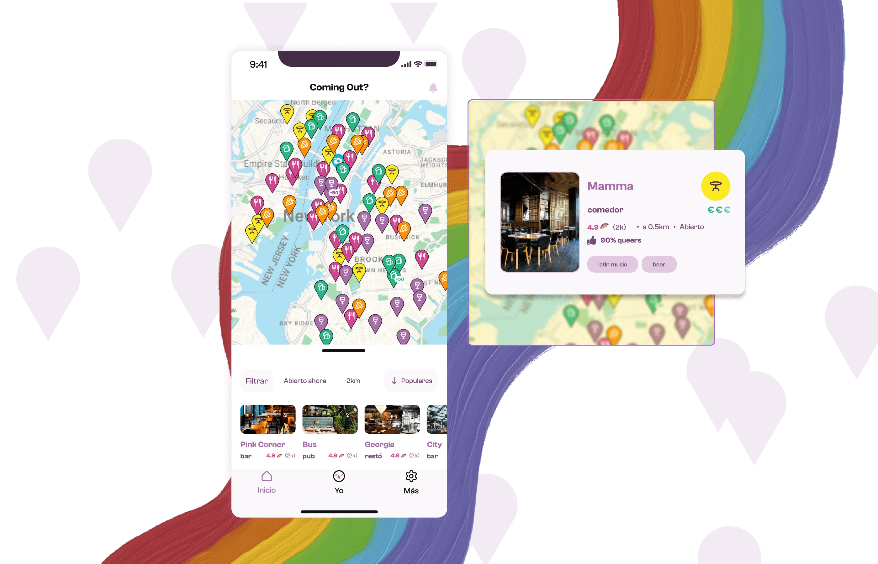 Coming Out? is an app to find LGBTQ+ friendly spaces like bars, restaurants, and pubs. It is a directory of places reviewed by people whose sexual orientation and identity are on the profile. It’s a real community.