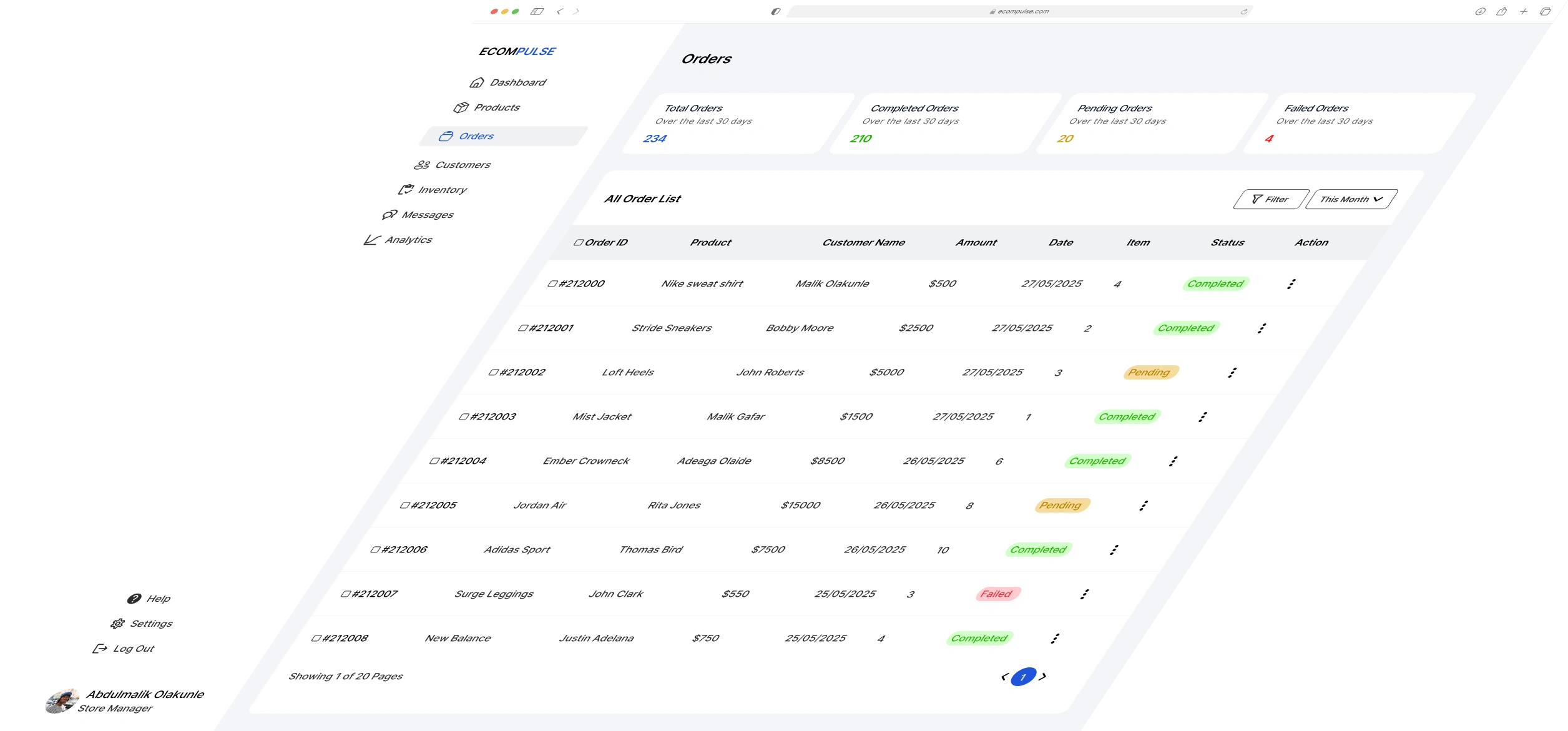 This dashboard is built to give e-commerce store managers a clear, real-time view of their operations, track performance and make smarter decisions.