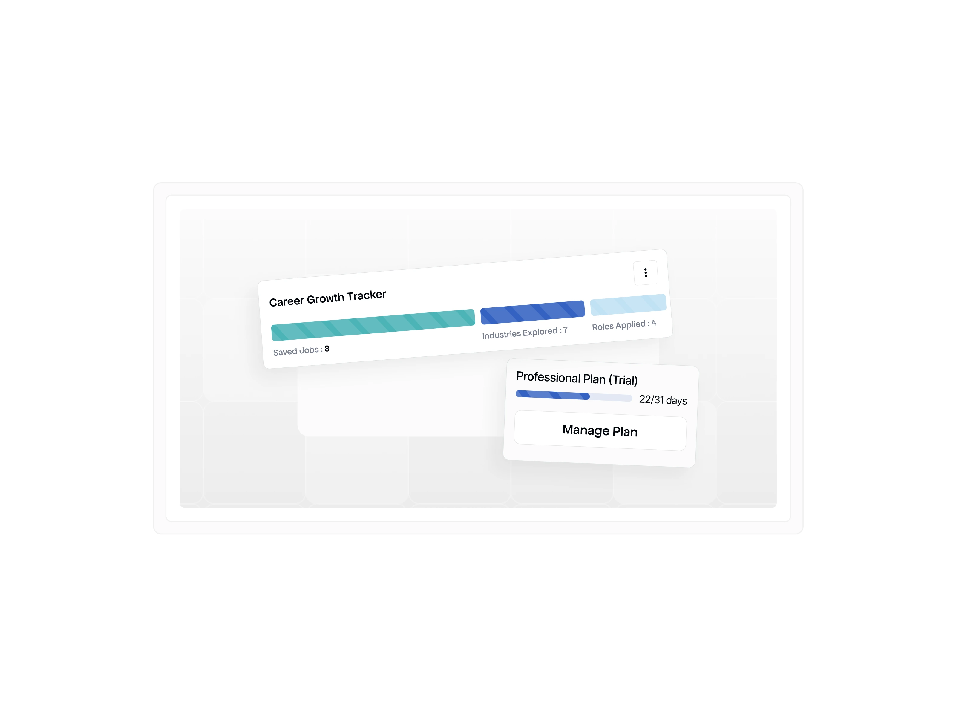 A modular approach to career management using a sleek bento grid to organize profile strength, application statuses, and networking goals.