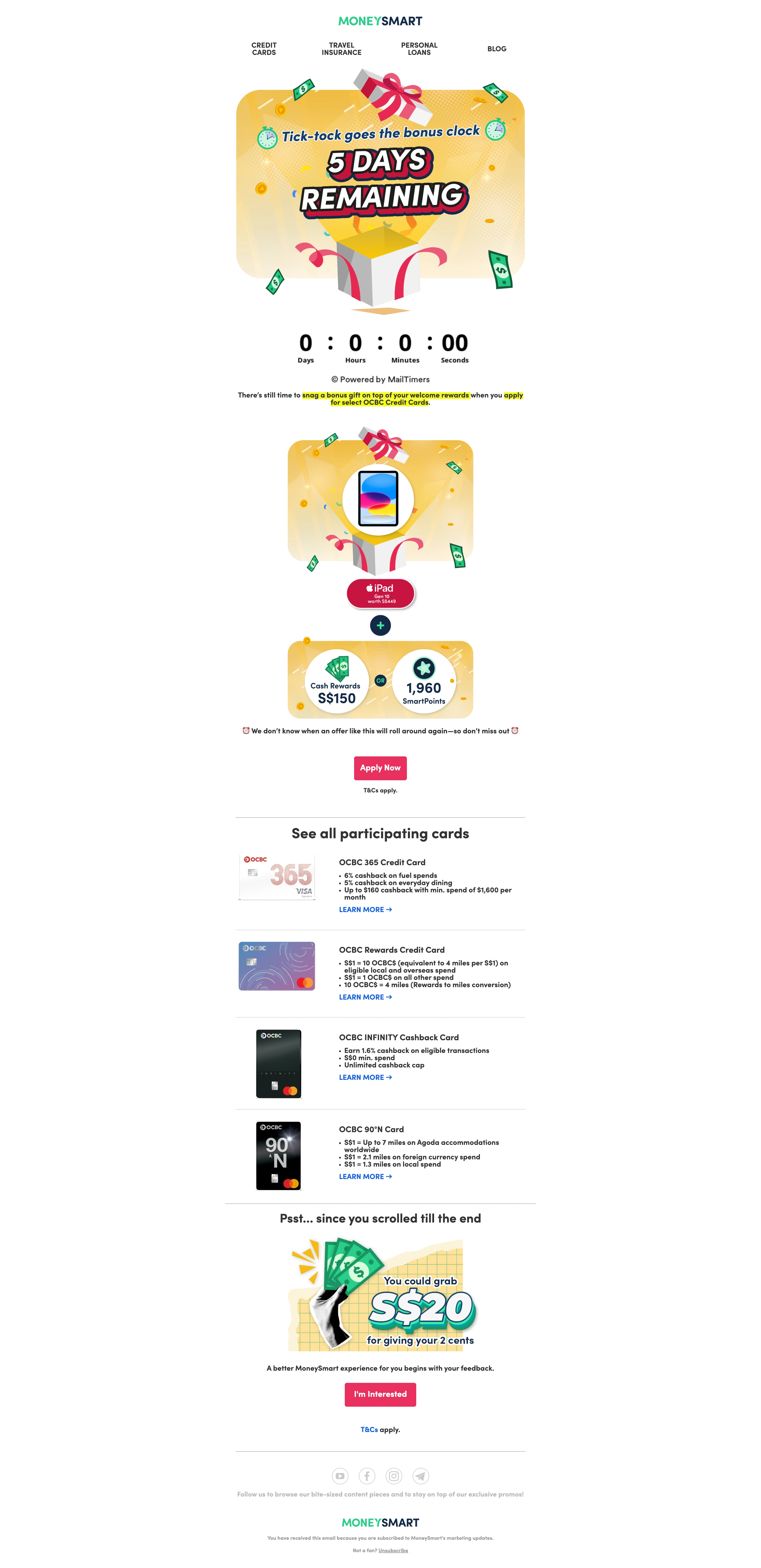 Designed high-converting email campaigns for various OCBC credit card products. Tasks included visual layout and ensuring consistent branding across devices and email clients.